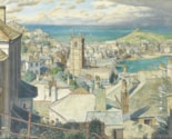 Badmin produced a handful of views of the picturesque fishing port and seaside resort of St. Ives in Cornwall. Another watercolour view of the town, inscribed by the artist ‘A Corner of St. Ives’ and ‘The Room with the View’, was on the London art market in 1985, while a view of St. Ives from Porthminster was included at the Autumn 1953 exhibition of the Royal Watercolour Society.