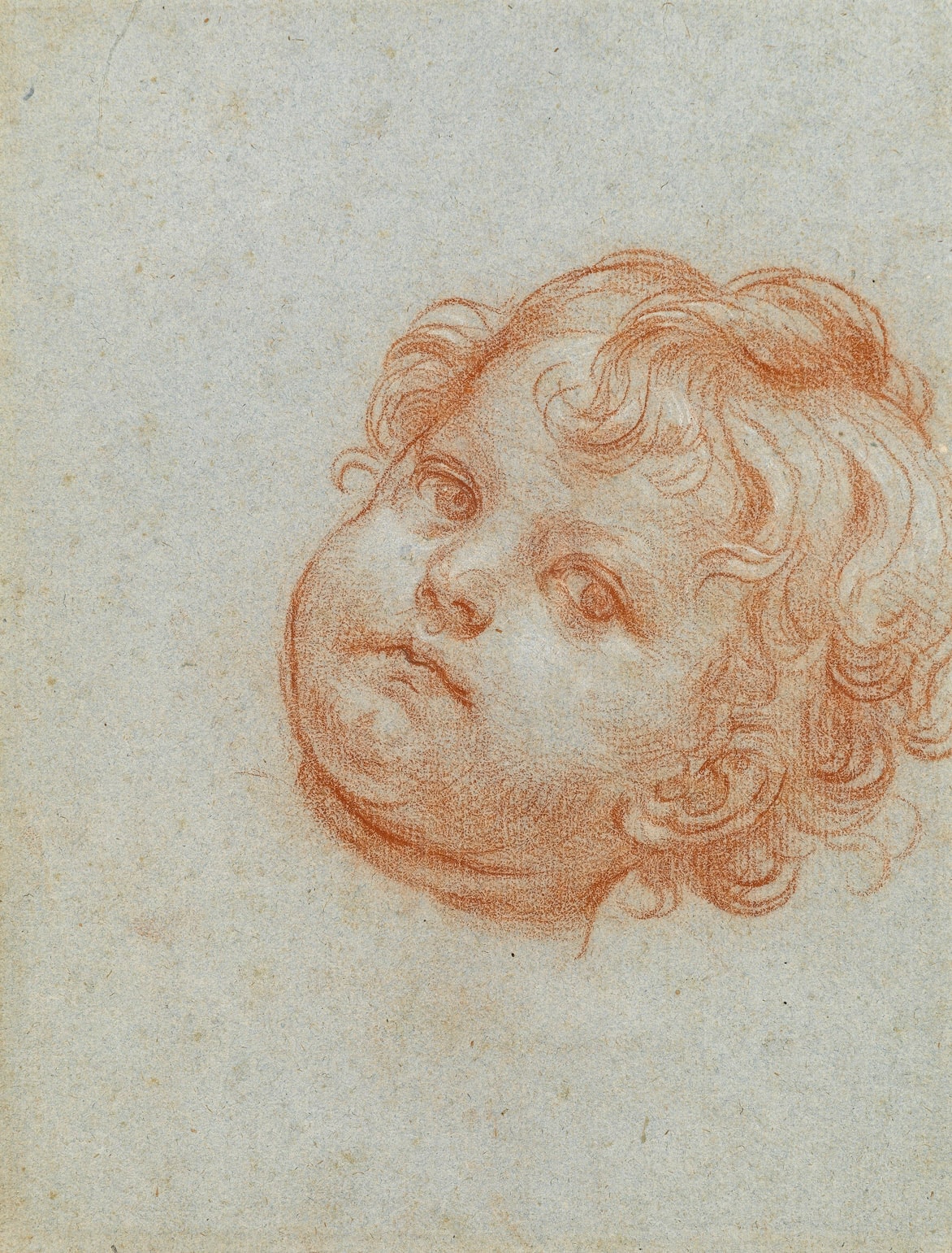 Simonetta Prosperi Valenti Rodinò has recently pointed out that the recto of this drawing is a study for the head of the child supported by his mother at the lower right of Maratti’s painting of The Martyrdom of Saint Blaise of c.1676-1678, painted for the Roman church of San Carlo ai Catinari and today in the church of Santa Maria Assunta di Carignano in Genoa. A study in black chalk of the head of the same young boy is among the large collection of drawings by Maratti in Düsseldorf, as is a study of the entire figure of the child.