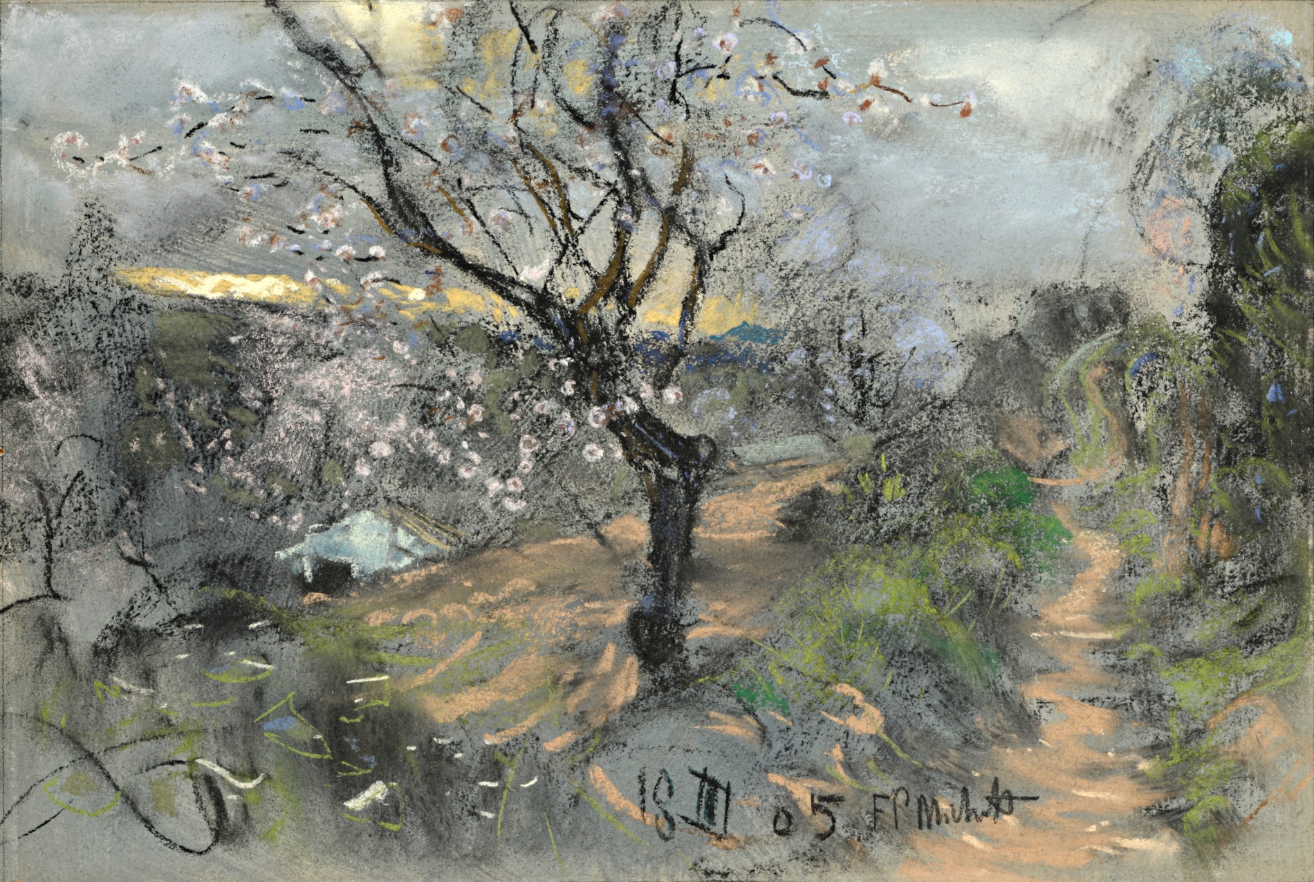 Drawn in March 1905, this pastel landscape dates from the last decades of Michetti’s career, when the artist had largely abandoned the official art scene in Naples. His work of this period is characterized by a more muted colour scheme, at times nearly approaching the monochromatic, ‘almost as if the artist were thirsting for purification after the orgy of colours employed since his youth and into maturity.’