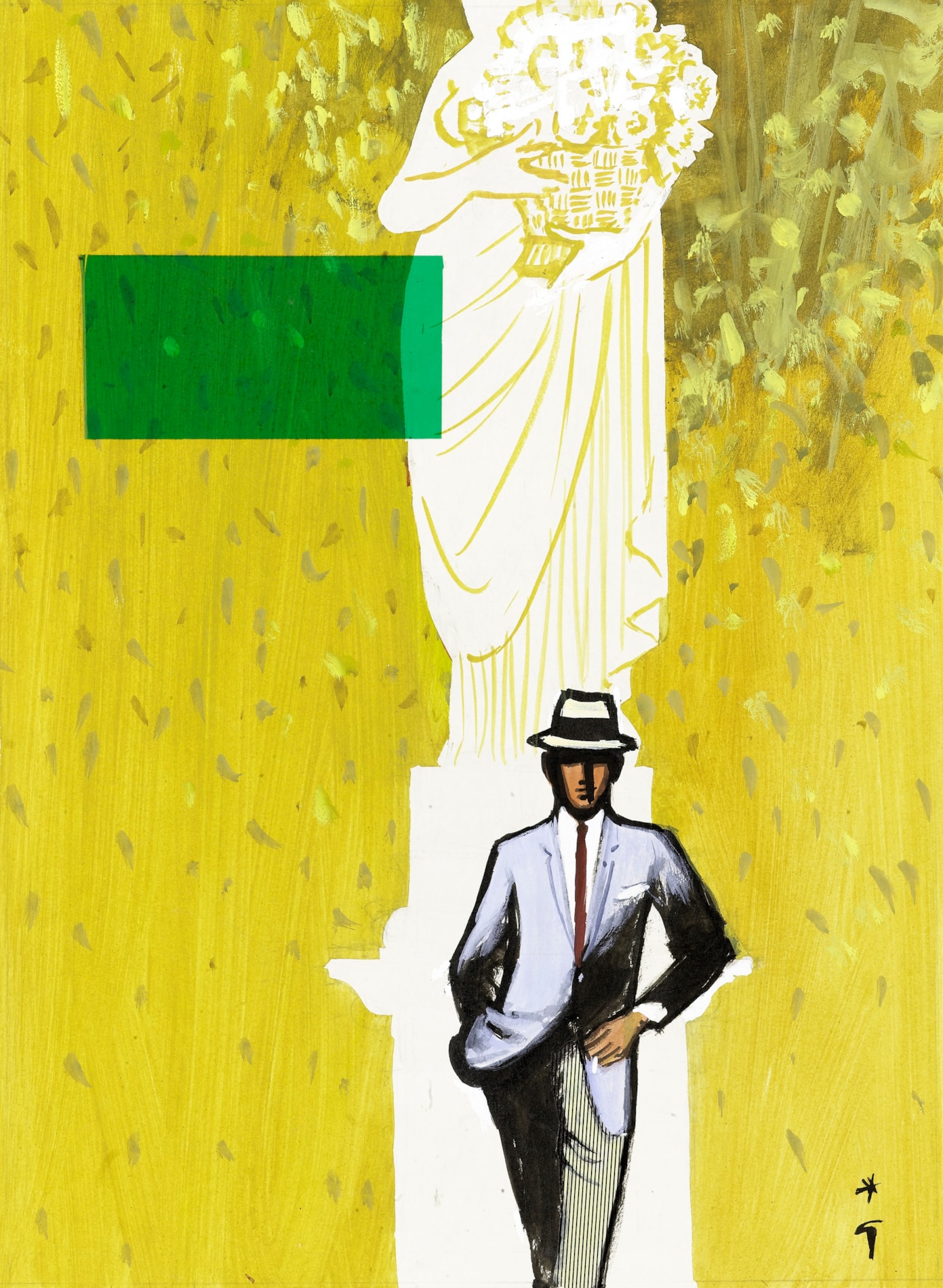 By the end of the Second World War Gruau’s reputation was firmly established, and had spread beyond France. He lived for several years in America, working for Harper’s Bazaar and Vogue in New York in the late 1940’s and in California for Flair. Although he had designed costumes and scenery for ballet companies in Paris, he declined offers to design costumes for Hollywood films. Following the death of Dior in 1957, Gruau largely abandoned the field of fashion illustration, and began providing designs for advertisements for such products as Martini, Lindt chocolates and Perrier, as well as theatre posters. In the 1980’s he returned to fashion illustration, working in Paris for Vogue France, Elle and Madame Figaro. A retrospective of Gruau’s work was held at the Musée du Costume in Paris in 1989, and at the city’s new Musée de la Publicité in 1999, while the following year a permanent exhibition of his work was inaugurated at the Museo della Città in the artist’s birthplace of Rimini.