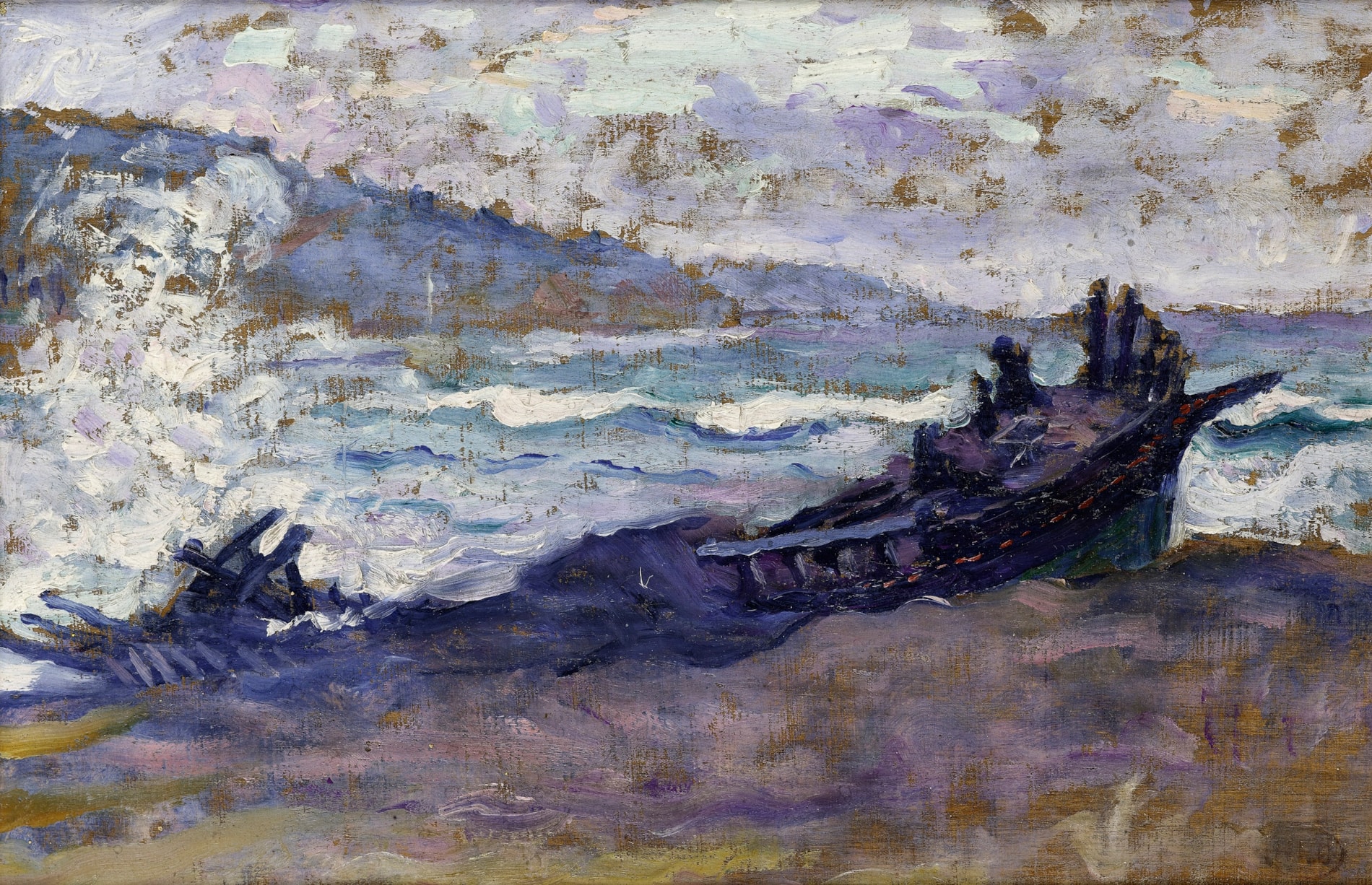 This small oil sketch is closely related to a large canvas known as L’Épave (The Wreck), signed and dated 1899 and probably painted at Saint-Clair; the painting is today in a private collection. The finished painting was exhibited at the Société des Artistes Indépendants in 1902 and at the Galerie Druet exhibition three years later, and soon afterwards entered the collection of the scholar and critic Félix Fénéon, a champion of the Neo-Impressionists who owned a large number of paintings and watercolours by Cross. The large painting was included in posthumous exhibitions of Cross’s work in Paris in 1927 and 1937.