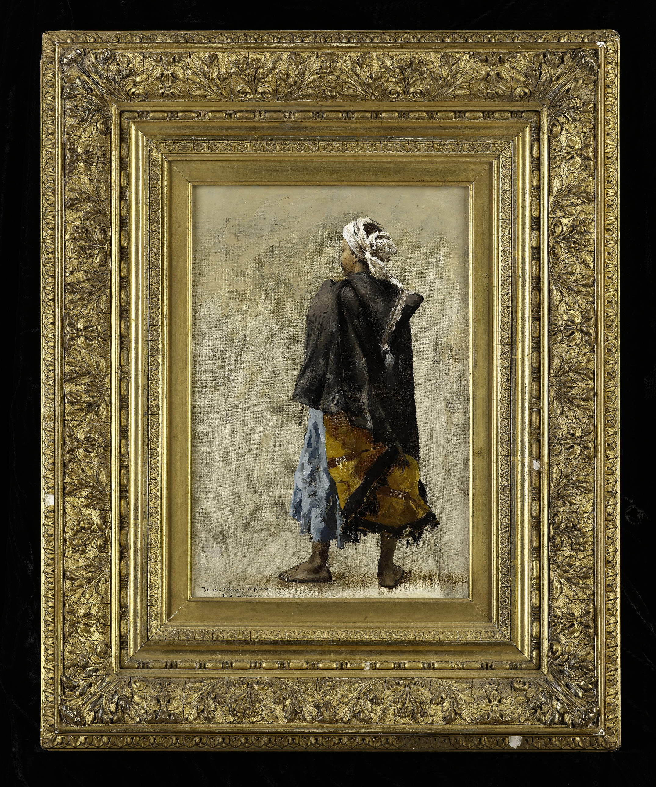 The present oil sketch is a study for the prominent figure in the foreground of Week’s large canvas Powder Play: City of Morocco, Outside the Walls, painted in Paris around 1880-18823, after the artist’s return from several years in Morocco. The painting depicts a scene outside the walls of a Moroccan city, possibly the ancient capital of Marrakech, with the snow-capped Atlas mountains in the distance. A contingent of mounted troops parades before the Sultan, sitting on horseback under a red canopy, while in the foreground a smaller group of mounted warriors show off their marksmanship.