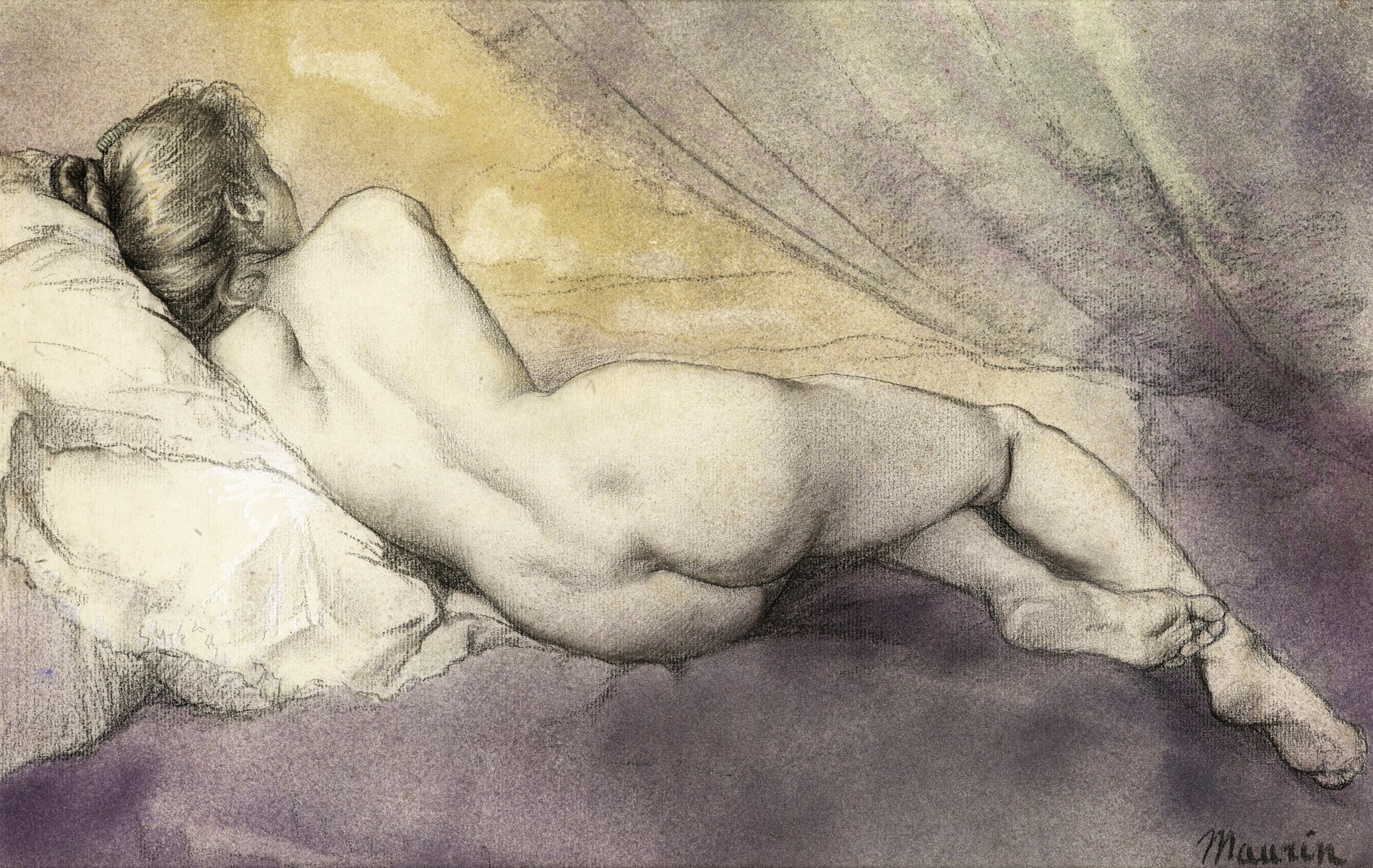 Among comparable pastel drawings by Maurin is a study of a young nude girl playing with a doll, in the Musée d’Orsay in Paris.