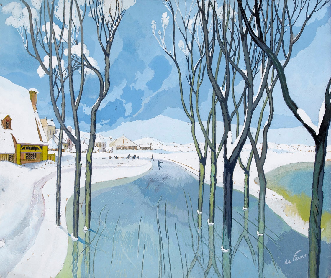 Of Belgian and Dutch origins, Georges de Feure was largely self-taught as an artist. He was born Georges Joseph van Sluijters in Paris, where his father worked as an architect. Returning with his family to the Netherlands with the outbreak of the Franco-Prussian war in 1870, De Feure did not come back to Paris until 1889. Settling in Montmartre, he may have trained with Jules Chéret and began working as an artist and illustrator. De Feure soon allied himself with the Symbolist movement, taking part in the Exposition des Peintres Impressionistes et Symbolistes at the Galerie Le Barc de Boutteville, alongside Gauguin and the Nabis artists, as well as showing his work at the Salons de la Rose + Croix of 1893 and 1894, where his watercolours garnered some critical praise. De Feure exhibited at the Societé Nationale in 1894, and the same year an exhibition of his watercolours was held at the Galerie des Artistes modernes in Paris, leading one critic to describe him as ‘an artist whose work is never banal, but whose symbolism is not always accessible.’ By this time De Feure was also designing posters, many seemingly influenced by Japanese prints, as well as producing colour lithographs.