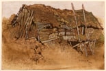 Watercolour and gouache, with pen and brown ink and brown wash.