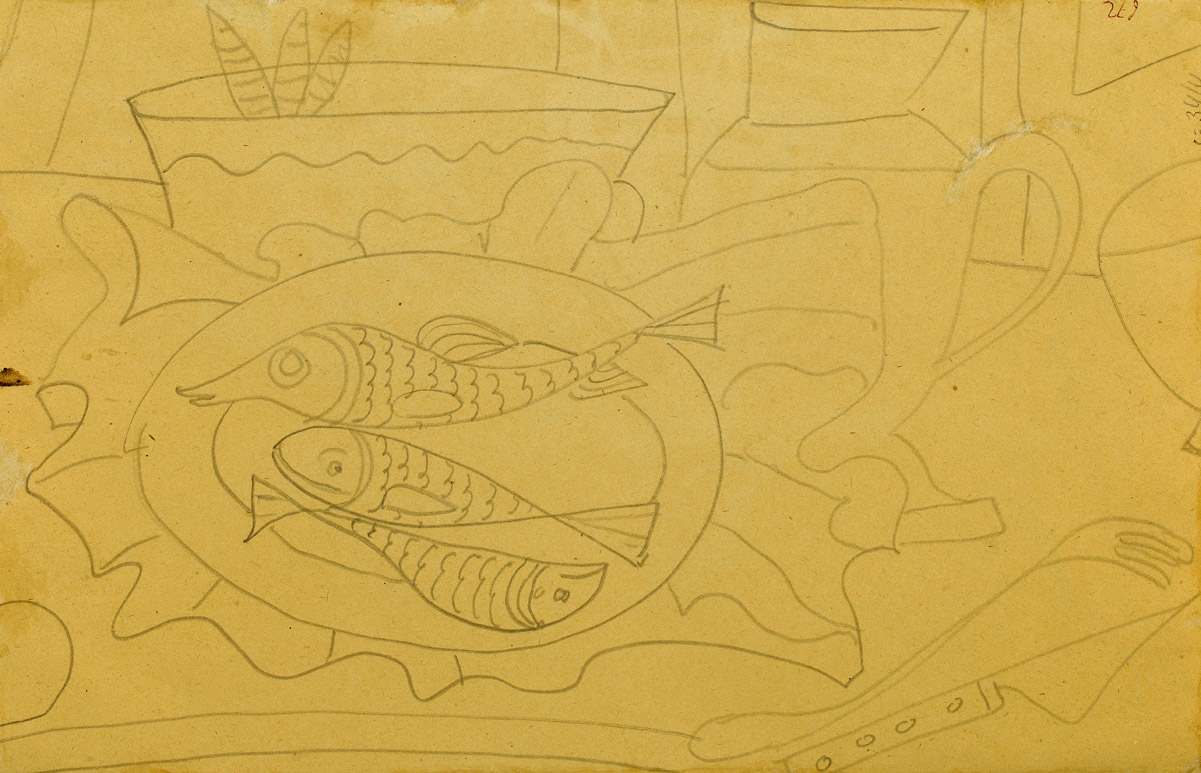 The still life composition on the verso is close to that of such paintings of the second half of the 1940’s as the Still Life with Fish and Pitcher in the Musée d’Art Moderne in Troyes.