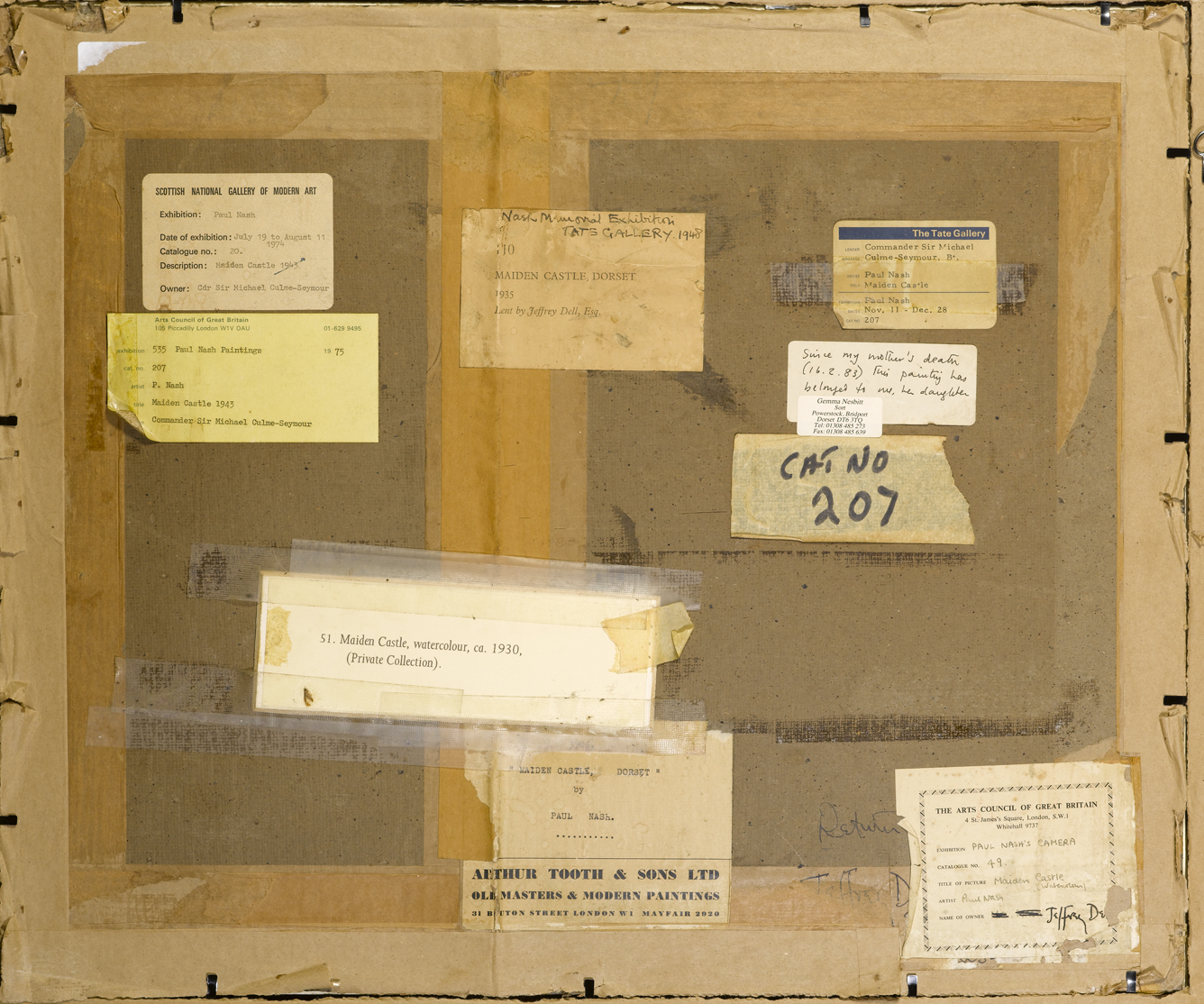 Titled and dated Maiden Castle / (Dorset) / traces for / painting on the verso.