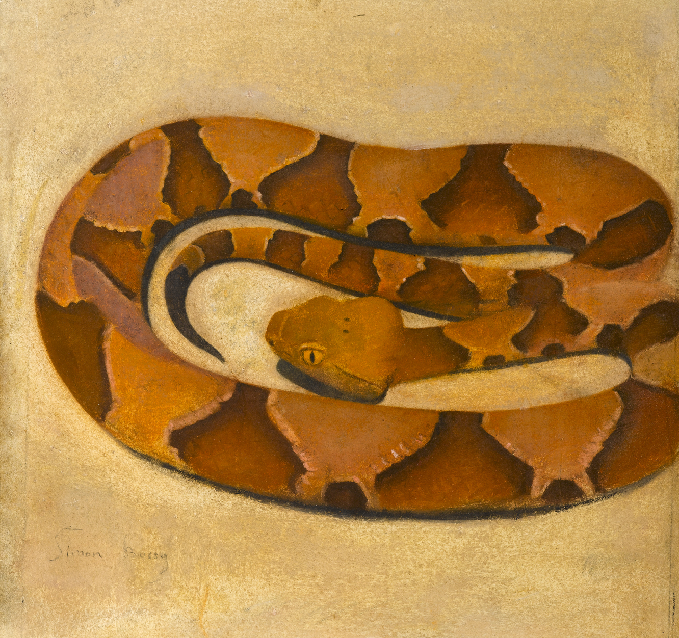 Paris, Galerie Druet, Pastels de Simon Bussy: Paysages du Maroc, Egypte, etc.. Oiseaux exotiques, reptiles, etc., June 1932, no.58 (‘Serpent tête de cuivre’); London, Ernst Brown & Phillips Ltd. (The Leicester Galleries), Pastels of Morocco and Zoo Studies by Simon Bussy, June 1933, no.38 (Copperhead Snake).