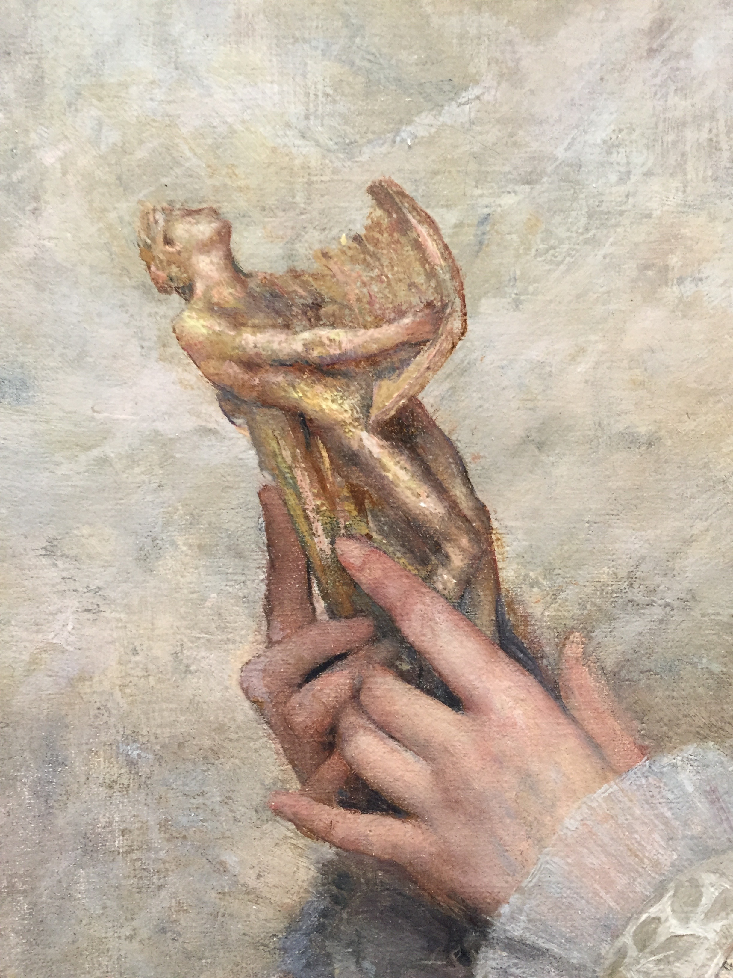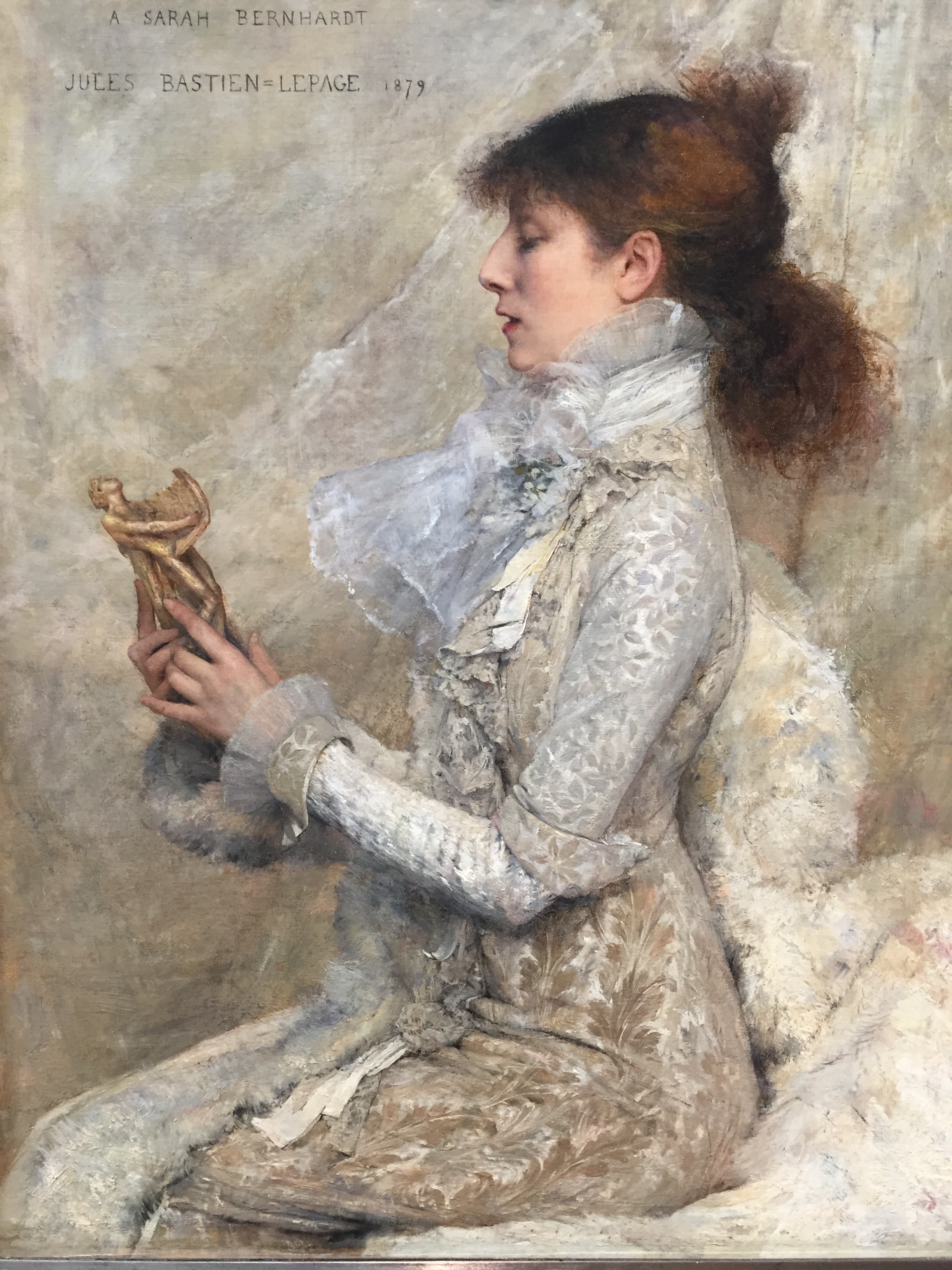 This small statuette of Orpheus reappears in Bastien-Lepage’s magisterial portrait of the actress Sarah Bernhardt, painted in 1879 and exhibited at the Grosvenor Gallery in London the following year; the painting is today in a private collection. Arguably the definitive portrait of the famous actress, Bastien-Lepage depicts Bernhardt holding the small sculpture of Orpheus. Although Bernhardt had a produced and exhibited a number of sculptures and had indeed achieved some renown as a sculptress, the small statuette of Orpheus which she holds was, in fact, that executed by Bastien-Lepage two years earlier.