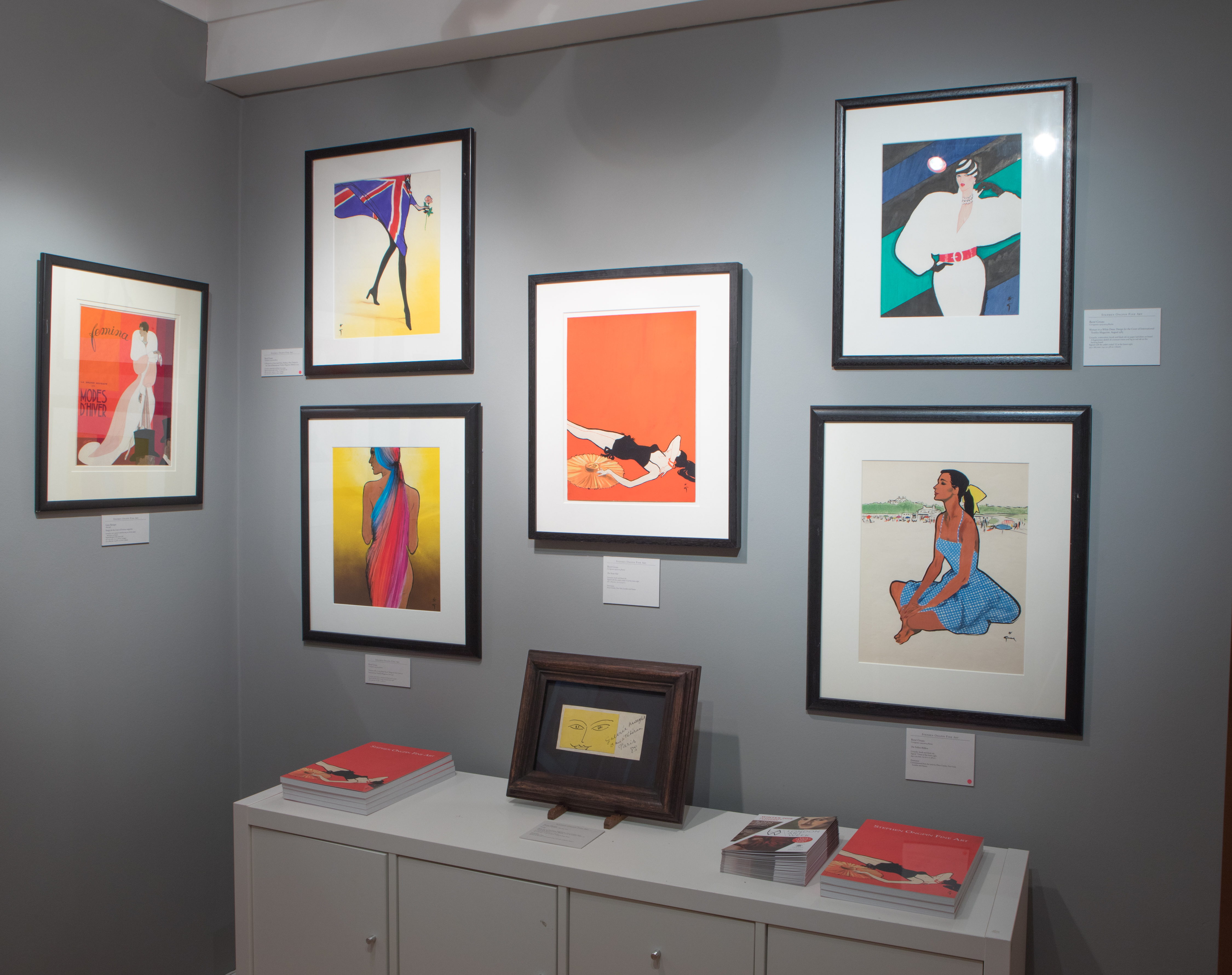 By the end of the Second World War Gruau’s reputation was firmly established, and had spread beyond France. He lived for several years in America, working for Harper’s Bazaar and Vogue in New York in the late 1940’s and in California for Flair. Although he had designed costumes and scenery for ballet companies in Paris, he declined offers to design costumes for Hollywood films. Following the death of Dior in 1957, Gruau largely abandoned the field of fashion illustration, and began providing designs for advertisements for such products as Martini, Lindt chocolates and Perrier, as well as theatre posters. In the 1980’s he returned to fashion illustration, working in Paris for Vogue France, Elle and Madame Figaro. A retrospective of Gruau’s work was held at the Musée du Costume in Paris in 1989, and at the city’s new Musée de la Publicité in 1999, while the following year a permanent exhibition of his work was inaugurated at the Museo della Città in the artist’s birthplace of Rimini.