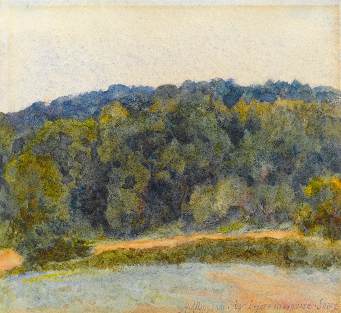 Signed and inscribed H. Allingham / just before moonrise . Shere at the lower right.