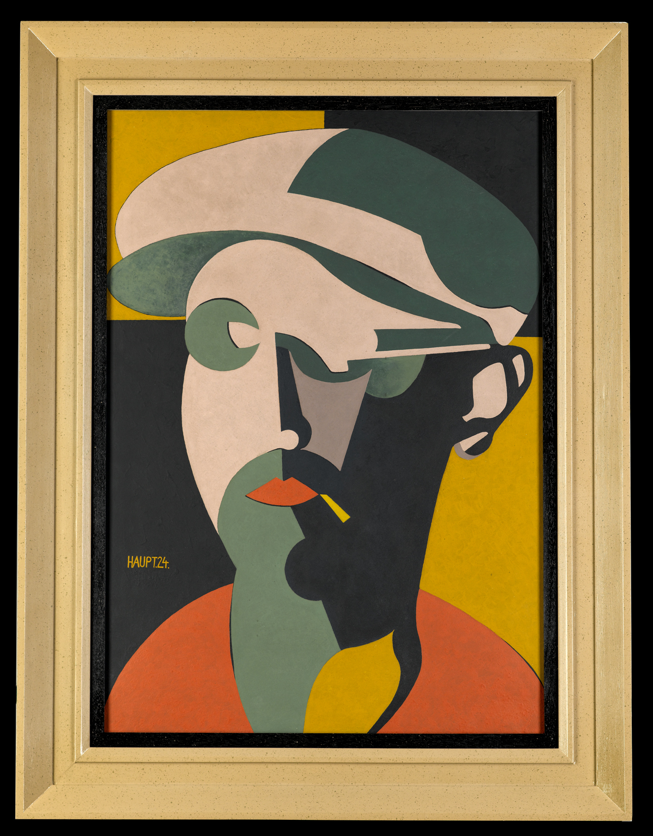 The influence of the teachings of the Bauhaus is evident in the handful of works by Haupt of the 1920’s that have survived. These include an abstract composition in watercolour of 1925 and a gouache and watercolour drawing entitled The Red Man of about the same date; both works are today in New York private collections. Another gouache drawing by Haupt of 1925, in which the artistic theories of the Hungarian Constructivist painter László Moholy-Nagy are particularly evident, is today in the collection of the Bauhaus Archive in Berlin, which also houses a number of linocuts by the artist that similarly reveal his debt to the example of Moholy-Nagy.