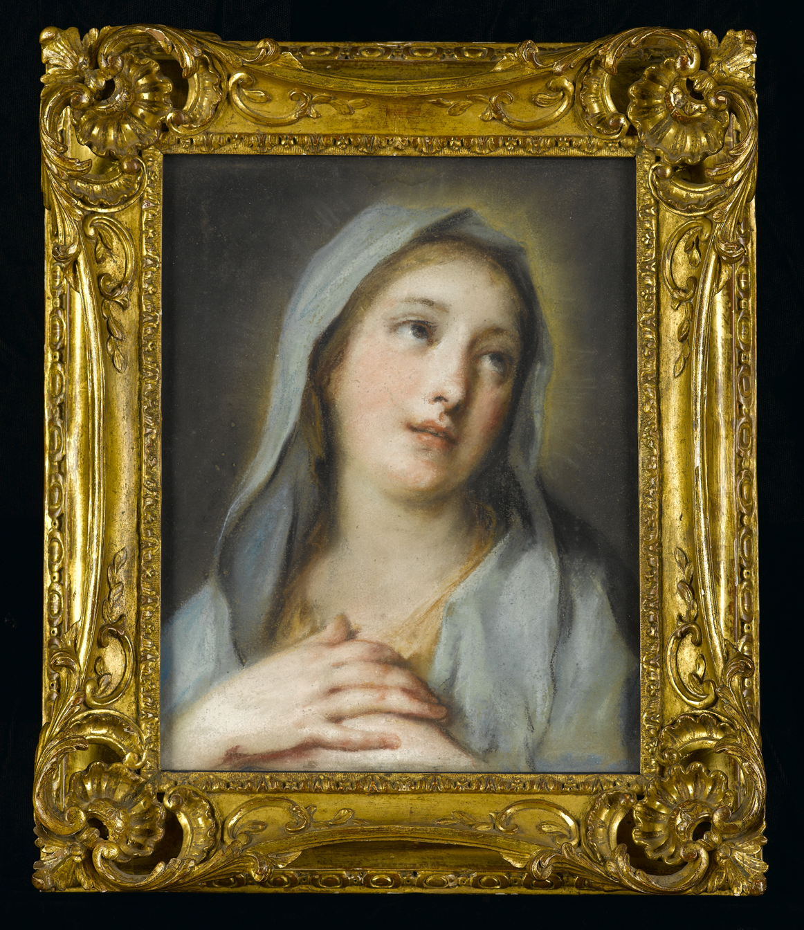 Religious subjects are rare in Rosalba Carriera’s oeuvre, although she did receive commissions for depictions of the Virgin and Mary Magdalene for the gallery at Dresden; several of these are today in the collection of the Gemäldegalerie in Dresden. The handful of pastel drawings of the Virgin that Carriera produced, of which the present example is one of the finest, display the distinct influence of such 16th century painters as Correggio, whose work she greatly admired. While the artist often repeated her compositions, no other variant of this particular pastel is known. Among comparable works by Carriera is a much larger pastel of The Virgin in the collection of the Museo Correr in Venice.