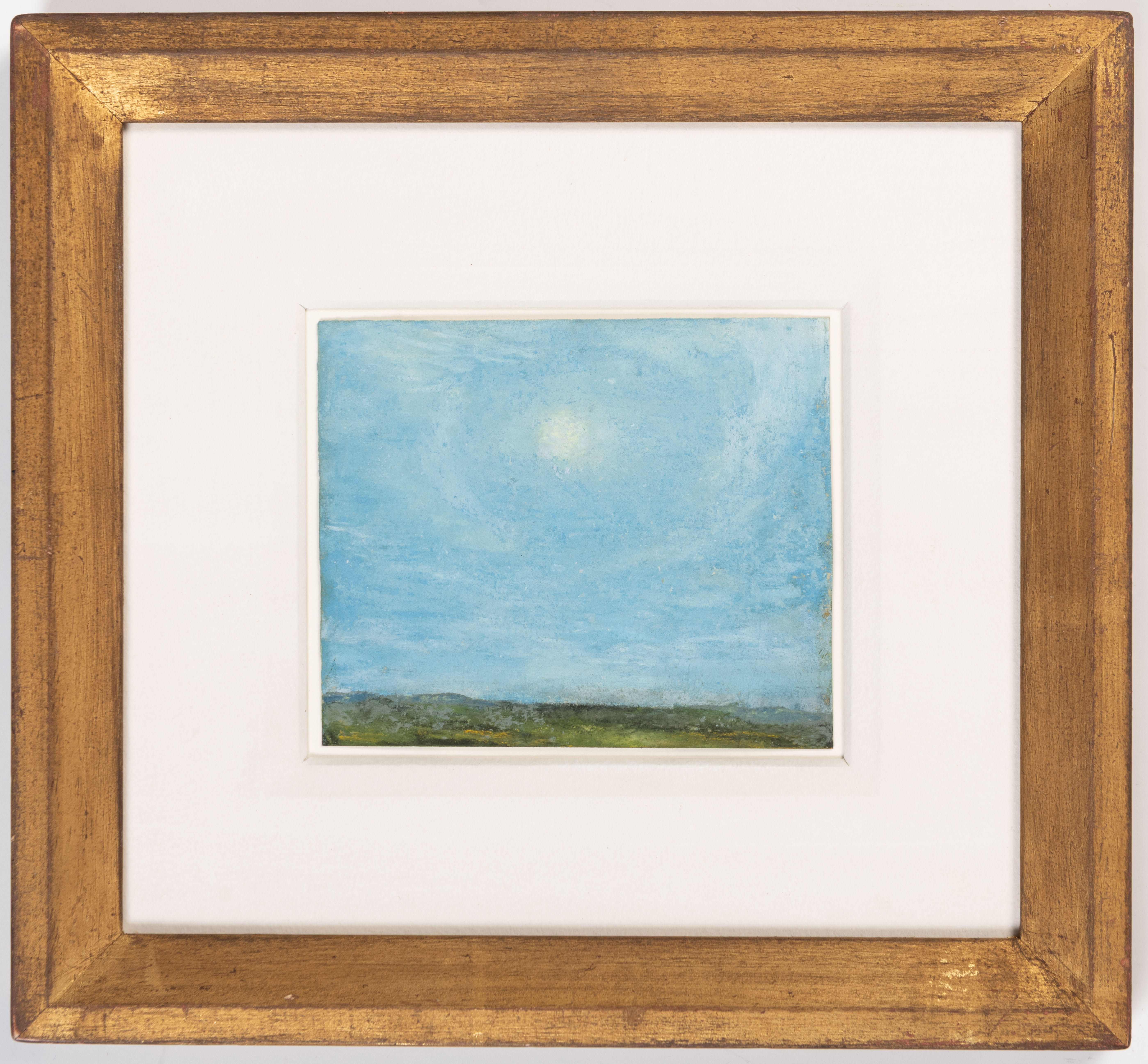 This small pastel may be dated to the spring of 1916, on one of the visits the young Rudolf Sauter made to his uncle John Galsworthy at Wingstone, his rented farmhouse home in the small village of Manaton on Dartmoor. As the artist later recalled, ‘It was no ordinary or sentimental love of Nature which this spot evoked. Here, the rain and the sun and the scent of the land entered in and became so much of my uncle’s own nature that he could never for long thereafter be quite happy apart from them…Even the enclosing fog, though it brought bronchitis to my aunt, made the wood fire and candles seem brighter and the little, low whitewashed rooms more comforting...At night there was a quality of stillness in the place, almost unknown in our present engine-dominated age…’