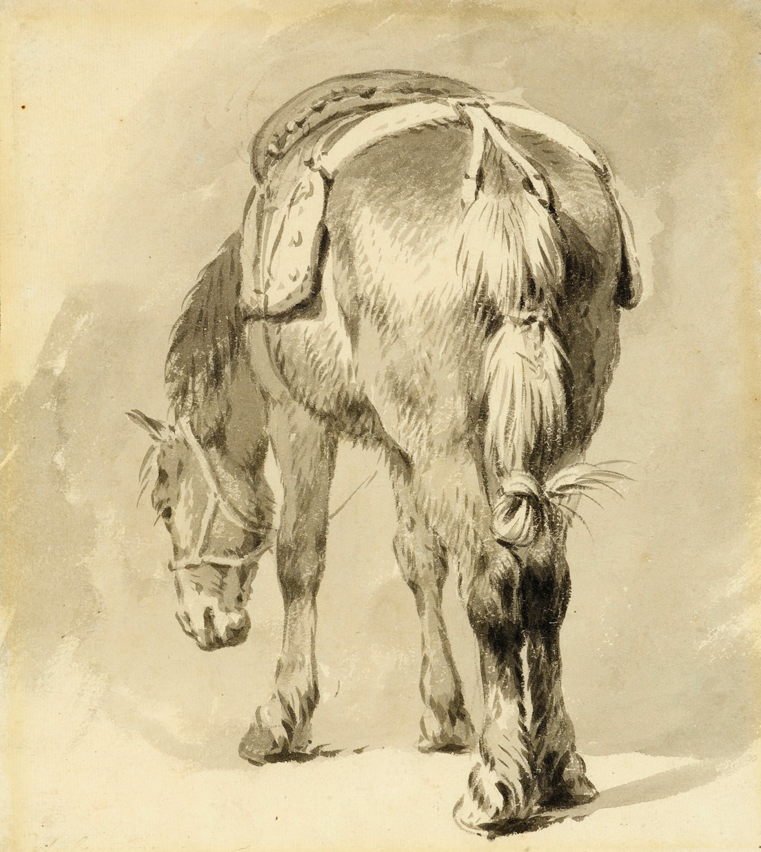 A closely comparable drawing by van Bloemen of a saddled horse seen from behind, in an identical technique, is in the collection of the Art Institute of Chicago. Among other stylistically comparable drawings of horses are two drawings in the Louvre and one in the Teylers Museum in Haarlem.