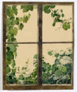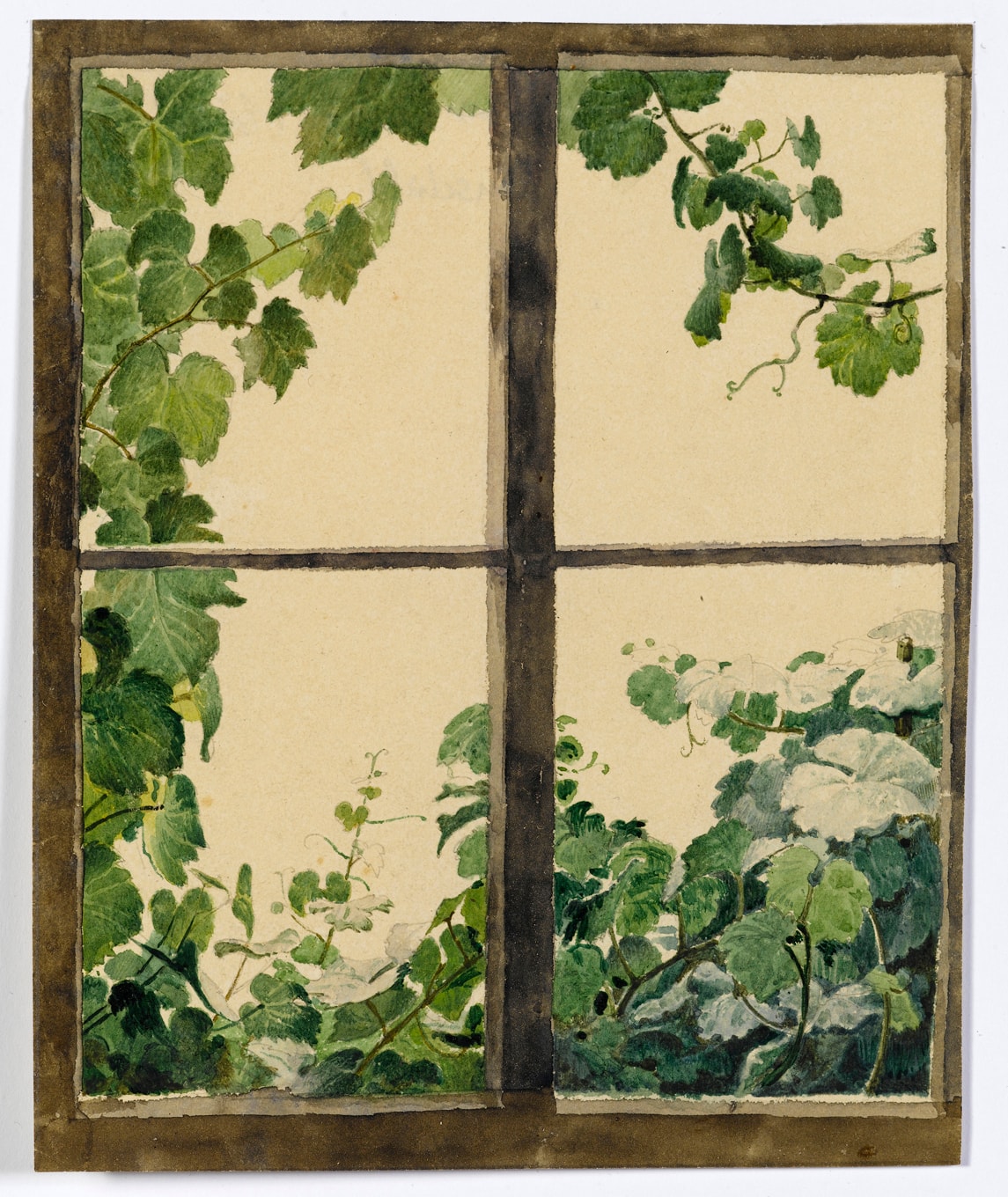 A View Through a Window, with Green Vine Leaves