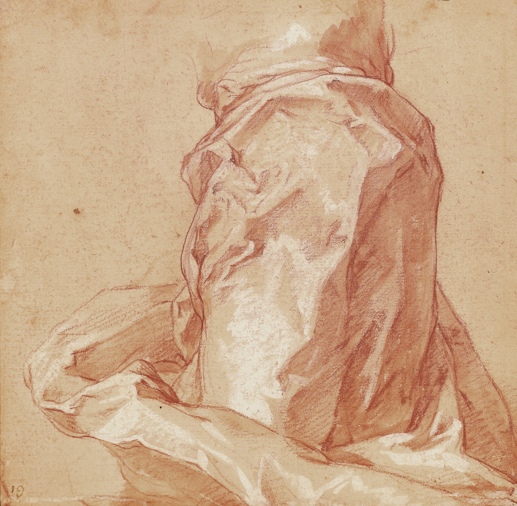 The head of an elderly man on the recto of this sheet is closely related to a drawing in the so-called Cambridge Album, in the collection of the Fitzwilliam Museum in Cambridge, which represents Bloemaert’s studies for the Tekenboek. The model appears to be the same as that used by the artist for three drawings of Saint Luke the Evangelist of 1629, and is also found in the background of a painting of The Preaching of Saint John the Baptist of c.1630, in the Herzog Anton Ulrich-Museum in Braunschweig. The study on the verso of this sheet be compared stylistically with a number of similar studies of drapery by Bloemaert, such as a drawing in the collection of The Metropolitan Museum of Art in New York.