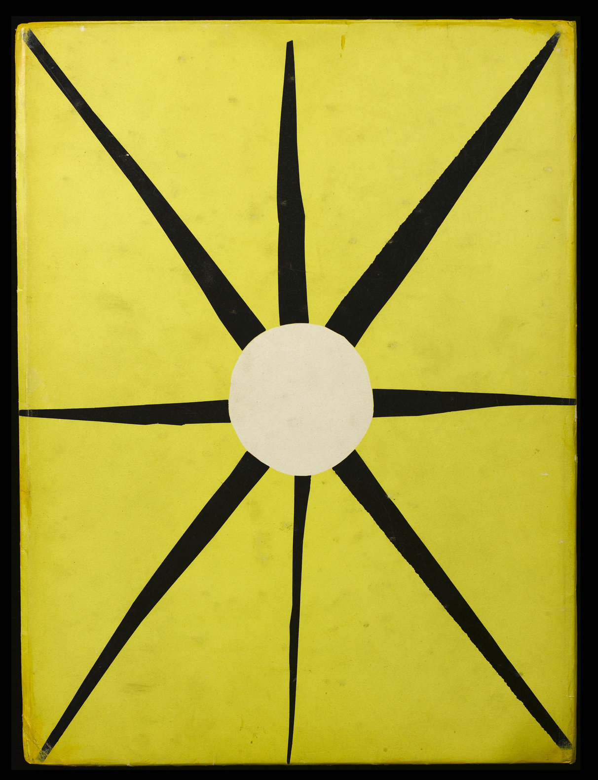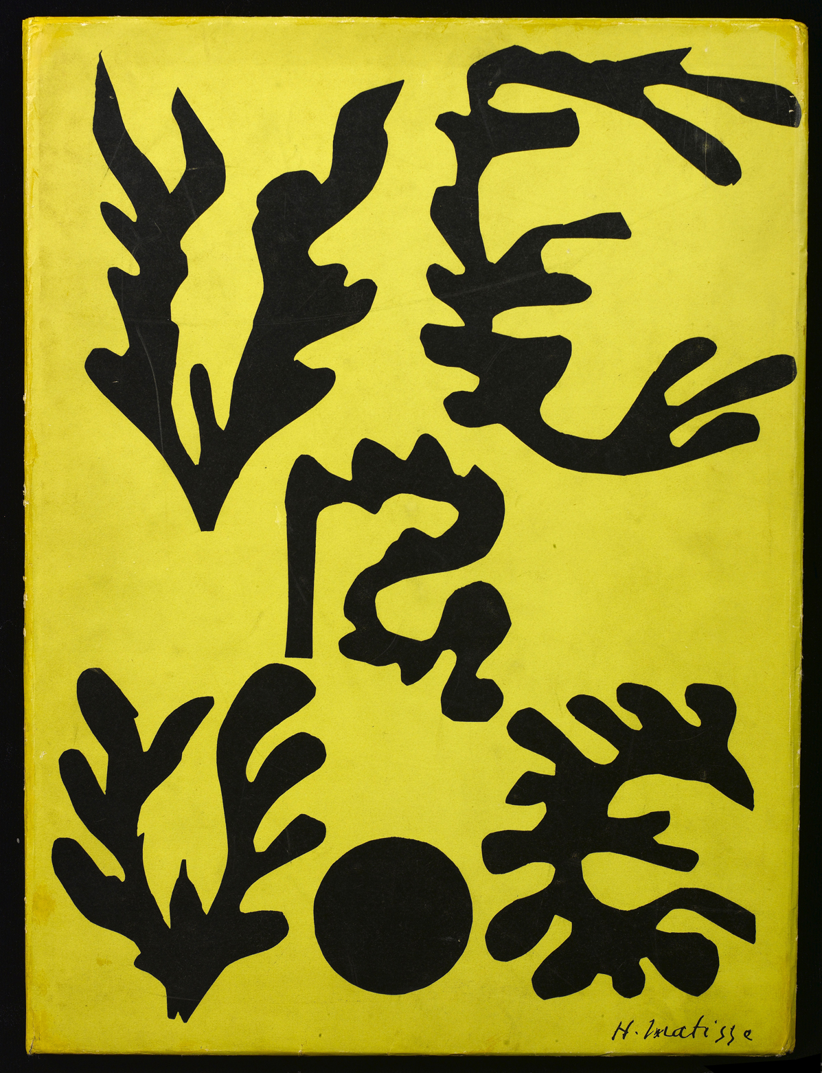 Anthonioz further notes that ‘Matisse’s cover for Verve Nos.21/22, an original lithograph, fairly bursts with delight in the sun and Mediterranean light. A blinding yellow background sets off some of those half-plant, half-shell cut-outs of which the artist was so fond. (Reminiscences of Tahiti?) This ‘hymn to the sun” spills over onto the back cover, where its rays overwhelm the entire surface, and is extended to include the frontispiece (a lithograph that features a solar eclipse). There is no text in this issue, aside from some prefatory lines handwritten by Matisse…The absence of any literary contribution is striking: this is the only issue of Verve that does include a poem, article, or some other form of original writing.’