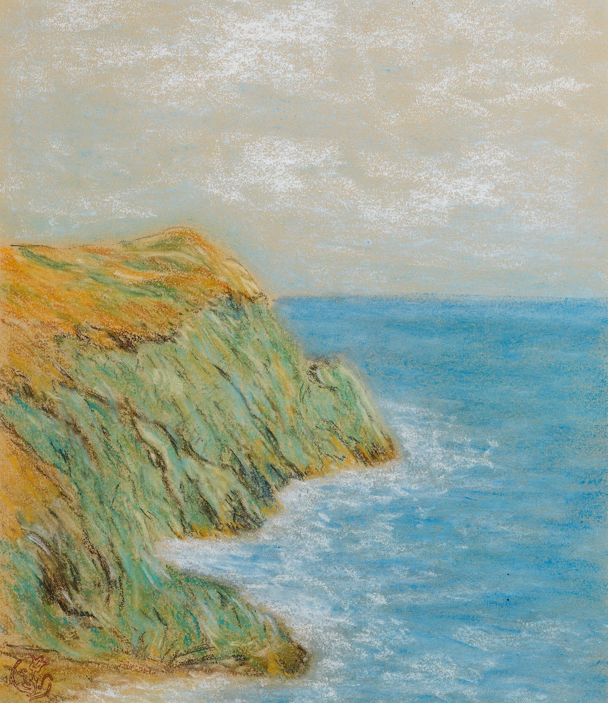 This drawing may be dated to the 1880’s or early 1890’s, when Schuffenecker produced a number of paintings and pastels of coastal views in Brittany and Normandy, particularly near Yport and Étretat. The pastel drawings of this period are, in particular, among the artist’s finest works in this demanding medium. As one scholar has noted, ‘The lightness of pastel, its own evanescence, was especially appropriate to Schuffenecker’s landscapes and seascapes – its transparent qualities and the ease with which it could be manipulated were ideally suited to capturing movement, setting down images whose essence was literally fleeting, changing, inconstant in appearance at any given moment.’ As another scholar has commented of Schuffenecker, ‘In his pastels from Normandy, the world appears as ephemerally fleeting reflections of an intensity that is matched only by the later works of Claude Monet. But Schuffenecker’s light is significantly cooler than Monet’s. Everything is enveloped in an atmospherically scintillating haze created by mixing white into the pigments.’