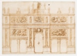A Design for a Facade of a Triumphal Arch or Temporary Structure, Decorated with Reliefs of the Labours of Hercules, Statues and Trophies