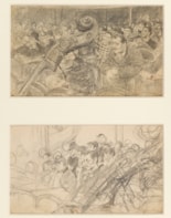 Boldini was a gifted and somewhat compulsive draughtsman, and filled many sketchbooks with drawings. (He would also use whatever paper came to hand, and there are examples of quick sketches drawn on menu covers, receipts, ledger paper, postcards, hotel stationery, pages torn from auction catalogues, and so forth.) His drawings, characterized by a restless energy and a spirited technique wholly in keeping with the bravura brushwork of his oil paintings, range from quick sketches of figures, landscapes, buildings and objects to more elaborate studies of these same motifs. As Richard Kendall has recently written, ‘Evident in almost all of [Boldini’s drawings] is a vivid engagement with the pleasures of looking and with the nervous exuberance of the drawing process, irrespective of the chosen subject…Some of these drawings would have taken only minutes or even seconds to complete, while others are the work of hours of concentrated labor…This engagement was vividly physical and sensuous, as his hand erupted in wild flourishes of pencil, pen and ink, crayon, and charcoal, or opted for extreme delicacy as the situation demanded.’ The largest surviving group of drawings by Boldini, bequeathed by the artist’s widow, is today in the collection of the Museo Boldini in Ferrara.
