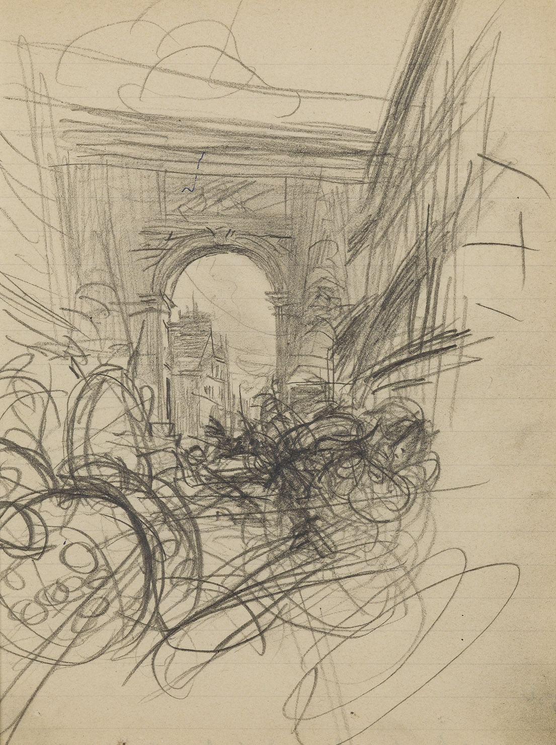 Boldini was a gifted and somewhat compulsive draughtsman, and filled many sketchbooks with drawings. (He would also use whatever paper came to hand, and there are examples of quick sketches drawn on menu covers, receipts, ledger paper, postcards, hotel stationery, pages torn from auction catalogues, and so forth.) His drawings, characterized by a restless energy and a spirited technique wholly in keeping with the bravura brushwork of his oil paintings, range from quick sketches of figures, landscapes, buildings and objects to more elaborate studies of these same motifs. As Richard Kendall has recently written, ‘Evident in almost all of [Boldini’s drawings] is a vivid engagement with the pleasures of looking and with the nervous exuberance of the drawing process, irrespective of the chosen subject…Some of these drawings would have taken only minutes or even seconds to complete, while others are the work of hours of concentrated labor…This engagement was vividly physical and sensuous, as his hand erupted in wild flourishes of pencil, pen and ink, crayon, and charcoal, or opted for extreme delicacy as the situation demanded.’ The largest surviving group of drawings by Boldini, bequeathed by the artist’s widow, is today in the collection of the Museo Boldini in Ferrara.