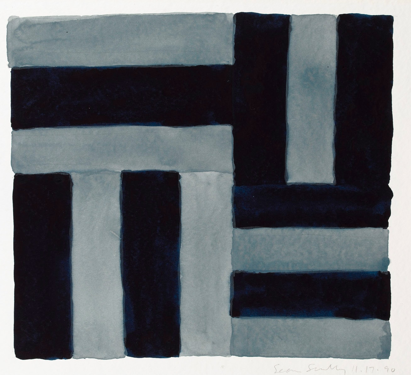 Signed and dated Sean Scully 11.17.90 at the lower right.