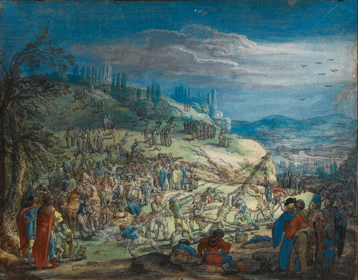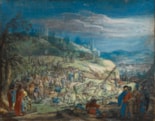 The artist responsible for this pair of Biblical scenes must have been inspired by the paintings of Adam Elsheimer (1578-1610), and in particular the small-scale religious scenes on copper painted by the artist in the first decade of the 17th century in Rome. Elsheimer’s small paintings, often crowded with figures and full of detail, were highly influential on the succeeding generation of Dutch, Flemish and German artists working in Rome. It is likely, therefore, that the author of the present pair of gouaches, each characterized by a dynamic composition and highly refined technique, may be found among the Northern artists active in Rome in the first quarter of the 17th century.