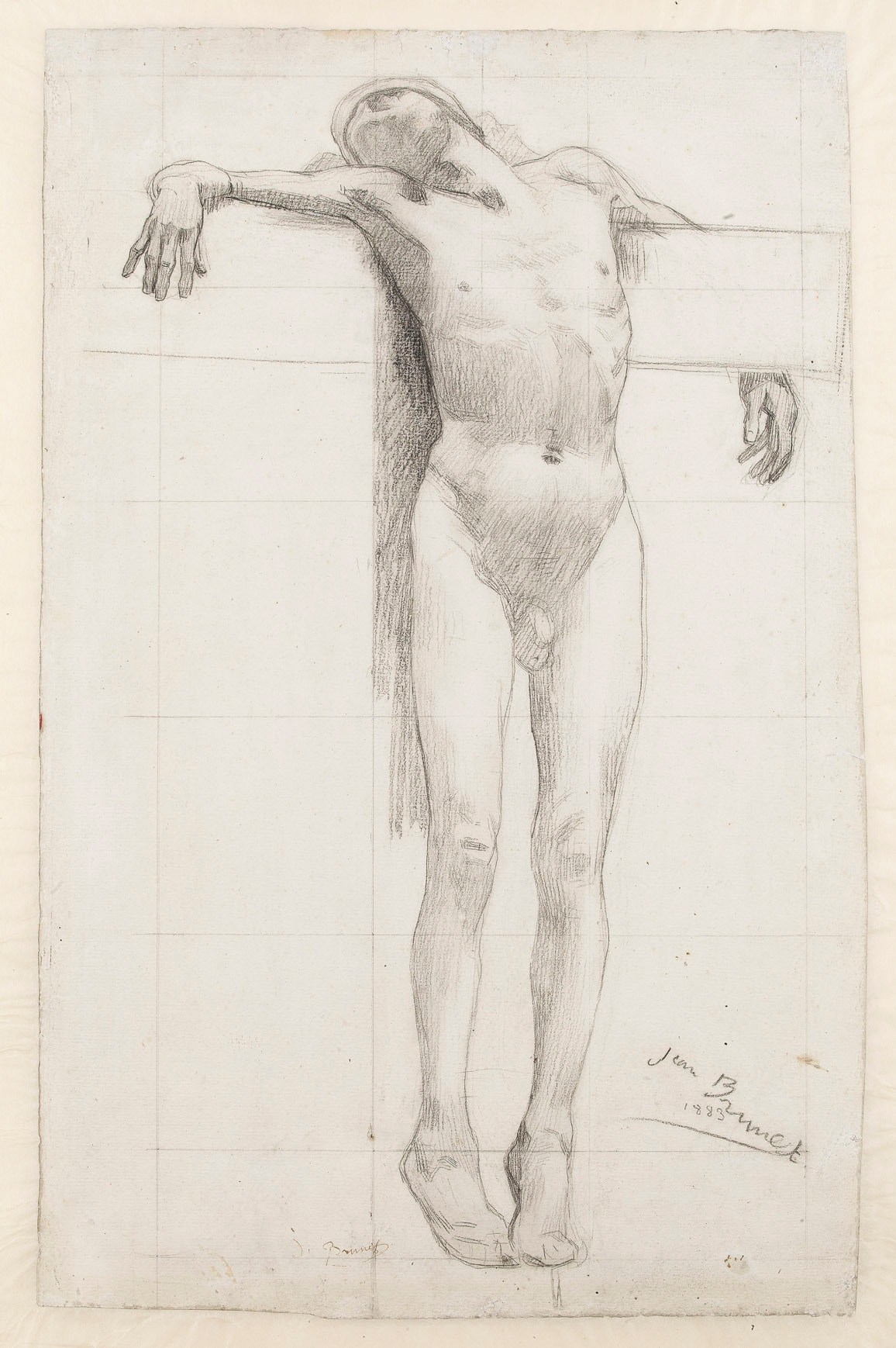 This drawing is a preparatory study for Brunet’s painting Golgotha, painted in 1883 and presented by the State in 1887 to the Musée de Poitiers, where it remains today. The same museum’s collection also includes four other works by this Poitevin painter, notably a painting of Charon on the River Styx, and two portraits.