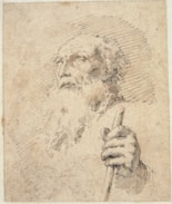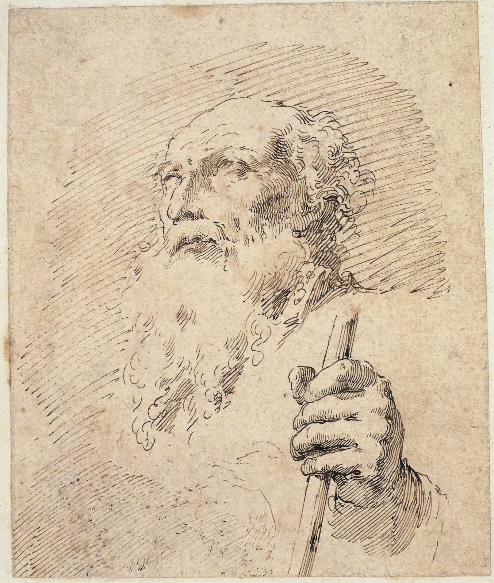 Studies of the Head of a Bearded Man and a Hand Holding a Staff