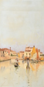 The son, grandson and great-grandson of painters, Raffaelle Mainella was trained at the Istituto di Belle Arti in Naples before transferring to the Accademia in Venice. Early in his career Mainella worked mainly as a painter in oils, with a particular preference was for views of Venice and its surroundings. But after a few years he decided to devote himself to watercolour, a medium in which he was highly regarded by his contemporaries. Although best known for his watercolour views of the Venetian lagoon, Mainella also produced a number of watercolours of Orientalist subjects. He travelled to Egypt in 1887 with the Swiss writer Baron von Gonzenbach, and his drawings were later used to illustrate Gonzenbach’s book Nihlfahrt.
