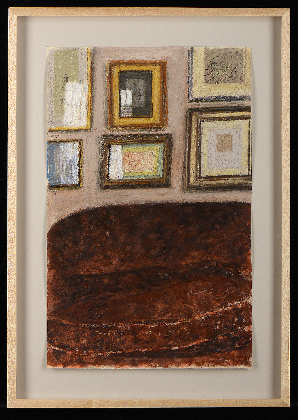 Arikha returned to the motif of reflections in a wall of framed drawings several years later, in a large pastel drawing executed on the 11th and 12th of January, 2000.