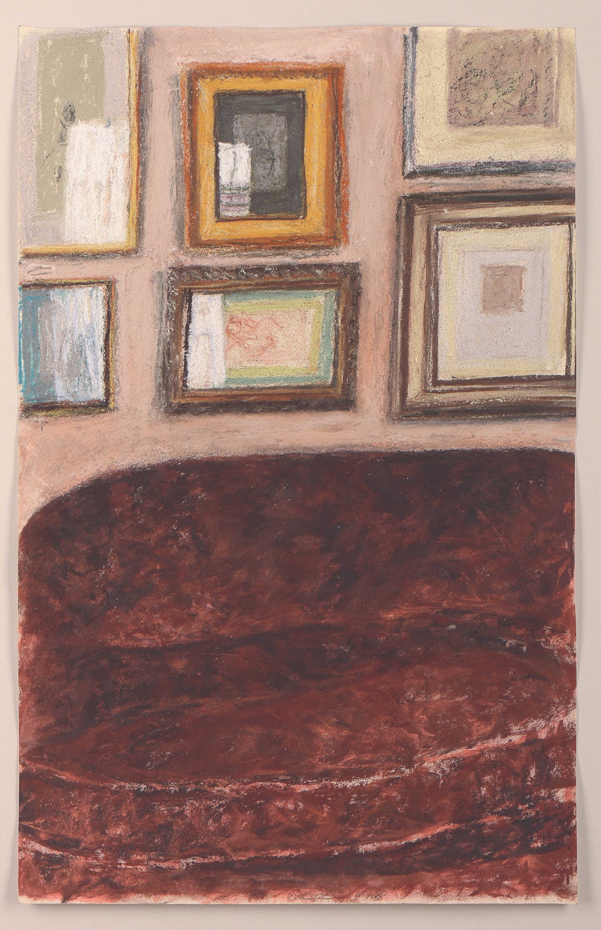 Drawn in November 1988, this pastel is closely related to a much larger oil painting entitled Reflections on the Drawings, completed in December of the following year and today in a private collection, in which the side of a bookcase appears at the left edge of the canvas. The framed drawing at the upper left of this composition, a study of heads by Alberto Giacometti, is more readily evident in the large painting.
