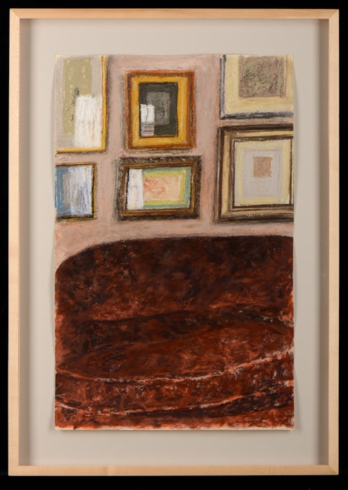 Arikha returned to the motif of reflections in a wall of framed drawings several years later, in a large pastel drawing executed on the 11th and 12th of January, 2000.