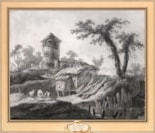 Pillement continued to travel extensively during the 1760’s, receiving several prestigious commissions. Between 1763 and 1765 he was in Vienna, where he won commissions from the Empress Maria Theresa and the Prince of Liechtenstein. He was appointed court painter to King Stanislas August Poniatowski of Poland, for whom he decorated rooms in the Royal Castle and the palace of Ujazdów in Warsaw between 1765 and 1767. Back in France and appointed peintre de la reine in 1778, Pillement painted three decorative canvases for Marie Antoinette’s Petit Trianon at Versailles; the only real instance in his long career of an official French commission. For much of the 1780’s he worked in Portugal and Spain, and it was during this period that he produced some of his finest landscape drawings. Returning to France in 1789, he abandoned Paris during the Revolution and spent much of the decade of the 1790’s working in the small town of Pezénas in the province of Languedoc. The last years of Pillement’s career found the artist in his native Lyon, where he was employed at the Manufacture de Soie et des Indiennes and gave lessons in decoration and design. He died in relative obscurity at the age of eighty, his output having suffered from the decline of the French taste for the rococo in the aftermath of the Revolution.