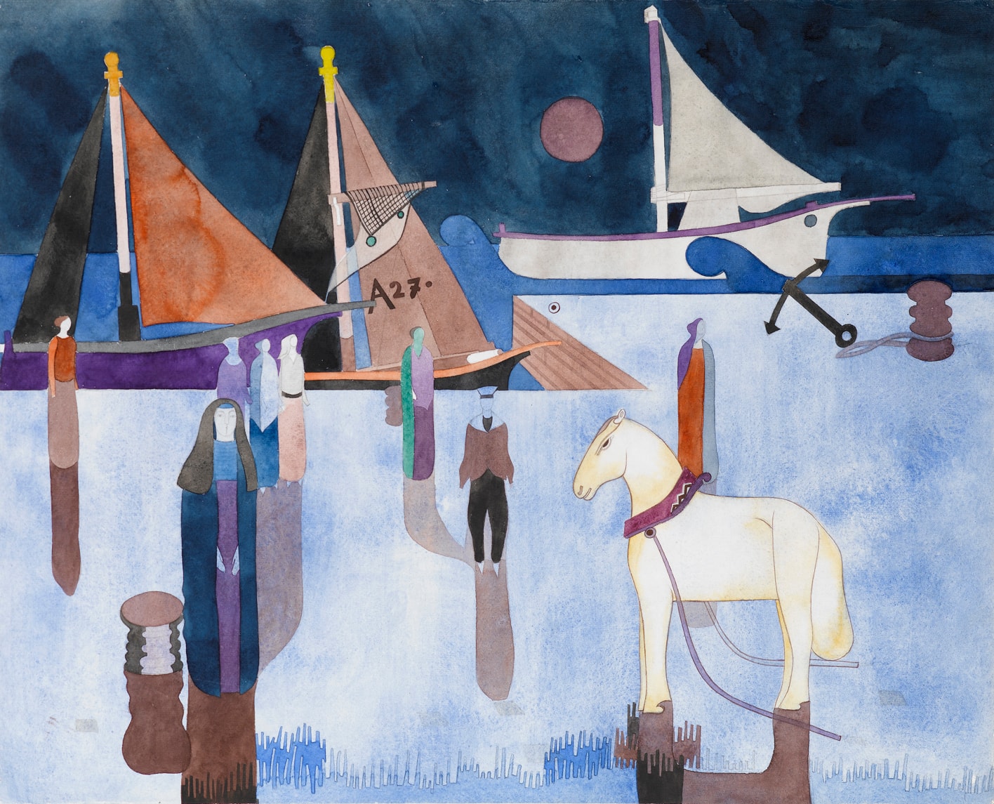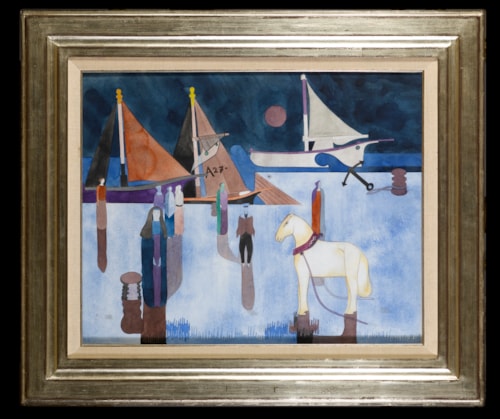 Included in a number of exhibitions devoted to the artists work, this large and vibrant watercolour can be dated to 1933, the year that Heinrich Campendonk left Germany for good. A related subject is found in another large watercolor of the same date, Figures in the Port (Menschen am Hafen), which was exhibited alongside the present sheet in Germany in 1976, and is today in a private collection.