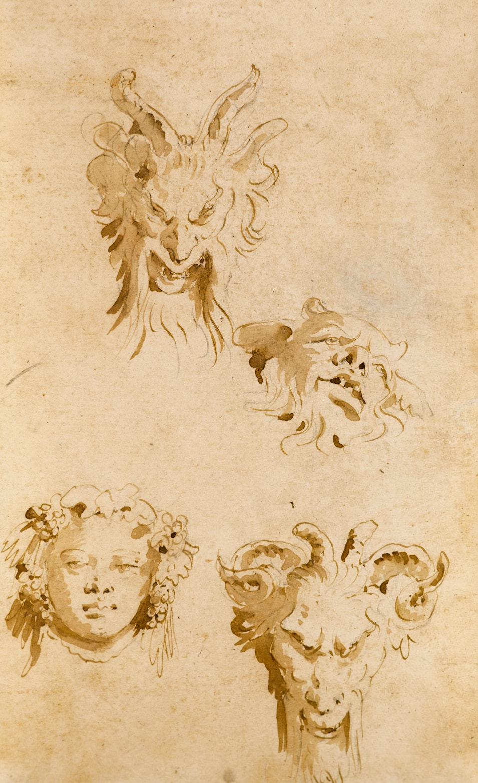 A Sheet of Studies of Three Heads of Satyrs and the Head of Bacchus