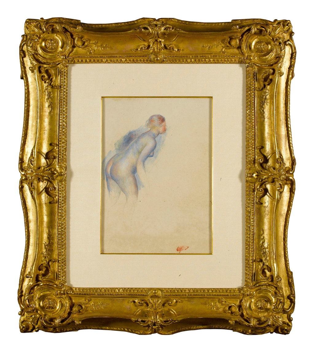 Figure drawings in watercolour by Renoir remain rare today, however. A stylistically similar study of a female nude, also drawn in pencil and watercolour, is in the collection of the Albertina in Vienna.