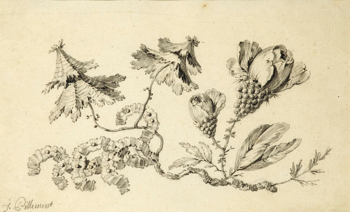 A comparable design for chinoiserie flowers is among a group of ornamental drawings by Pillement in the Rothschild collection at Waddesdon Manor, while other, similar studies of flowers are in the Musée des Arts Décoratifs in Lyon.