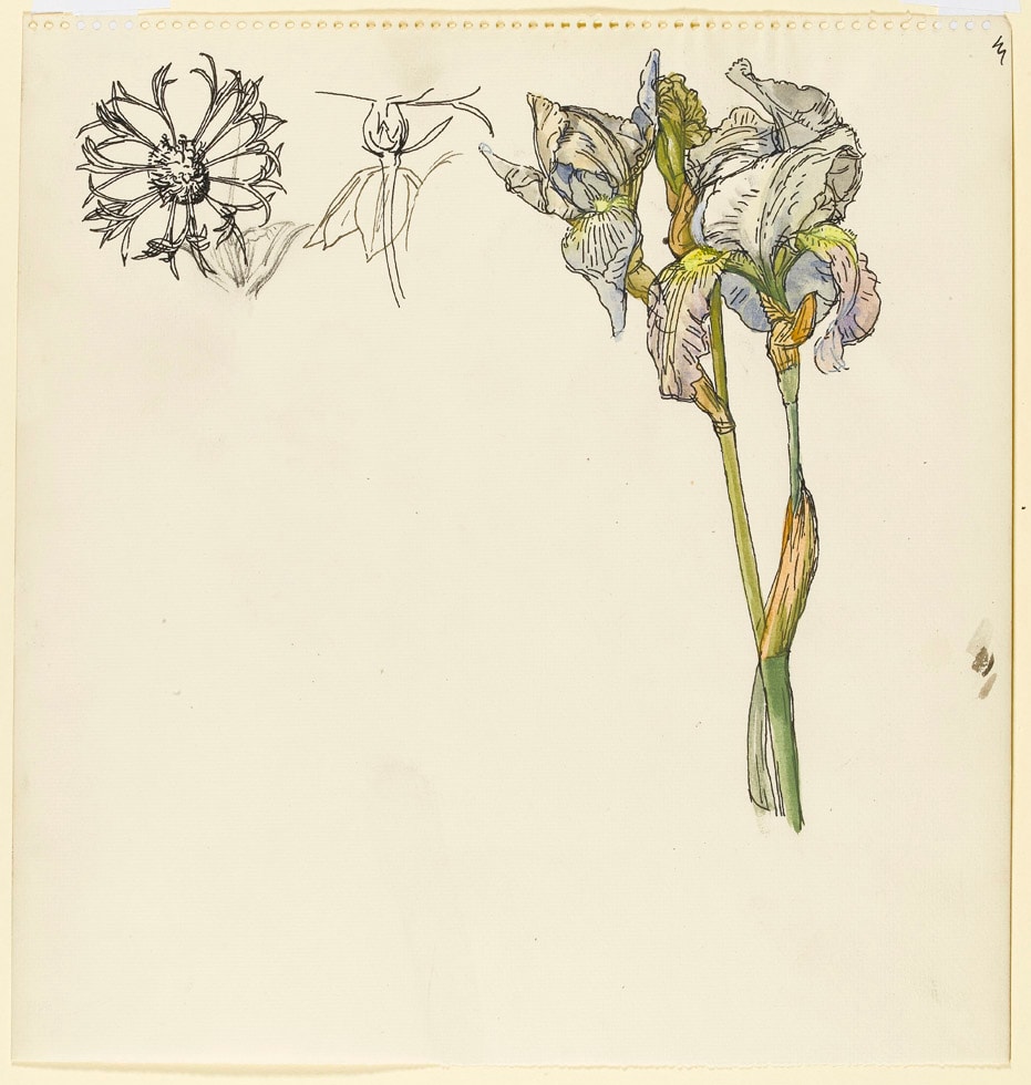This sketch of an iris perfectly illustrates Charles Mahoney’s in-depth knowledge and understanding of plant life. The ink strokes are quick, confident and yet extraordinarily detailed. Mahoney seems to have largely turned to making drawings such as the present sheet in the years following his series of mural decorations, and while working as an art teacher. As his friend and fellow painter Bernard Dunstan recalled, ‘Charles was doing a number of quite large drawings of plants…with the pressure of teaching, and the continual travelling by train that it incurred, he concentrated his energies on these superb drawings…They have great directness and objectivity and yet great warmth of feeling. They make most drawings of plants, seem by comparison, weak or merely botanically accurate…I can think of very few recent artists who have drawn plants with the vigour and understanding that Mahoney brought to them.’