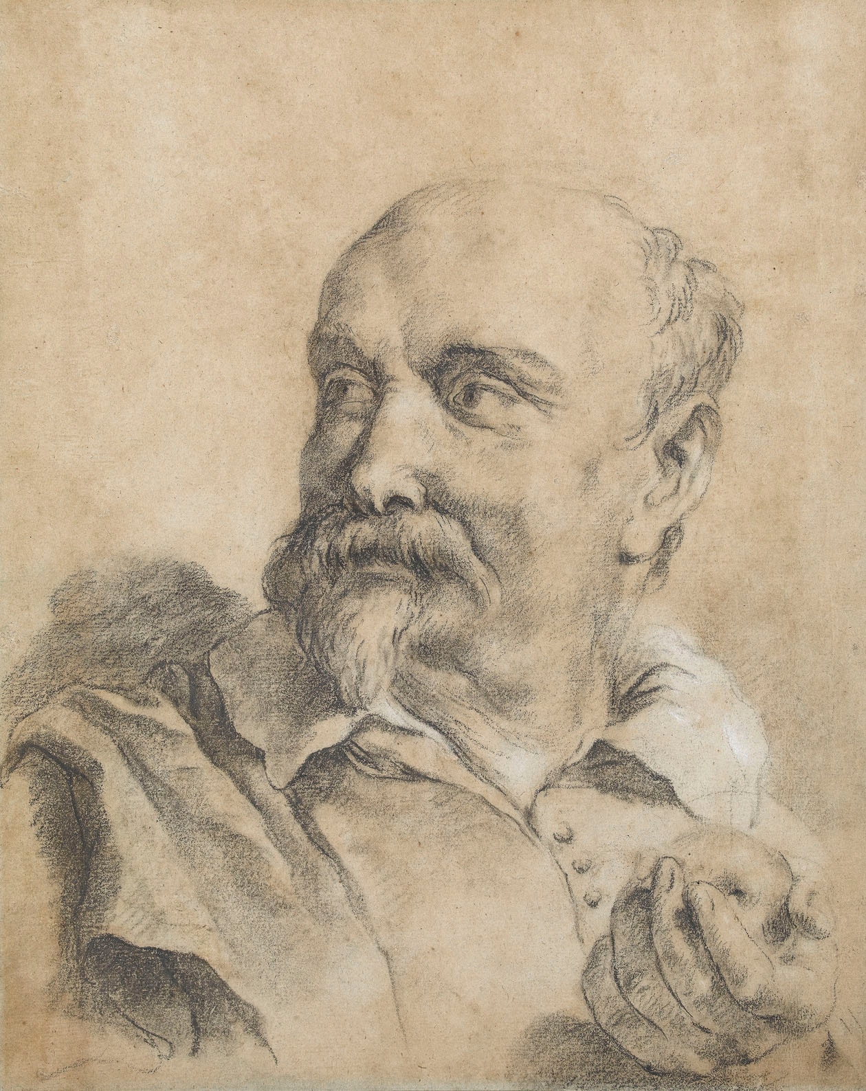 Although the present sheet may be thought to record a drawing by Piazzetta, no such prototype is known. Instead, as Michael Burrell has kindly pointed out, Maggiotto seems to have derived the physiognomy, pose and costume of his subject from a portrait etching of the painter Jan Snellinck from the Iconography series of Anthony Van Dyck.