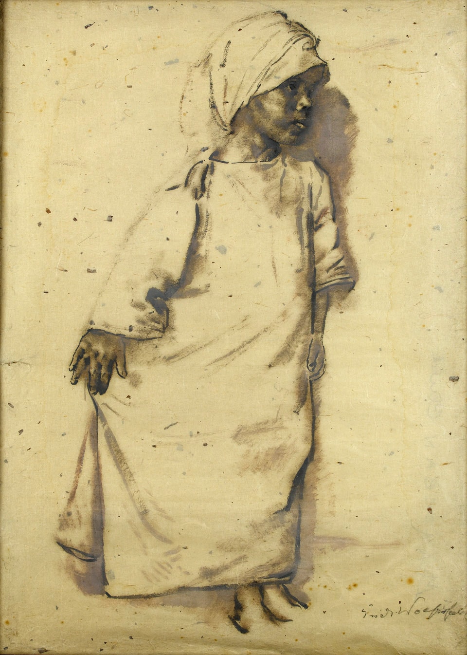 A similar girl appears in an oil sketch by Wolfsfeld of Arab Children and a Donkey, on the art market in London in 1977.