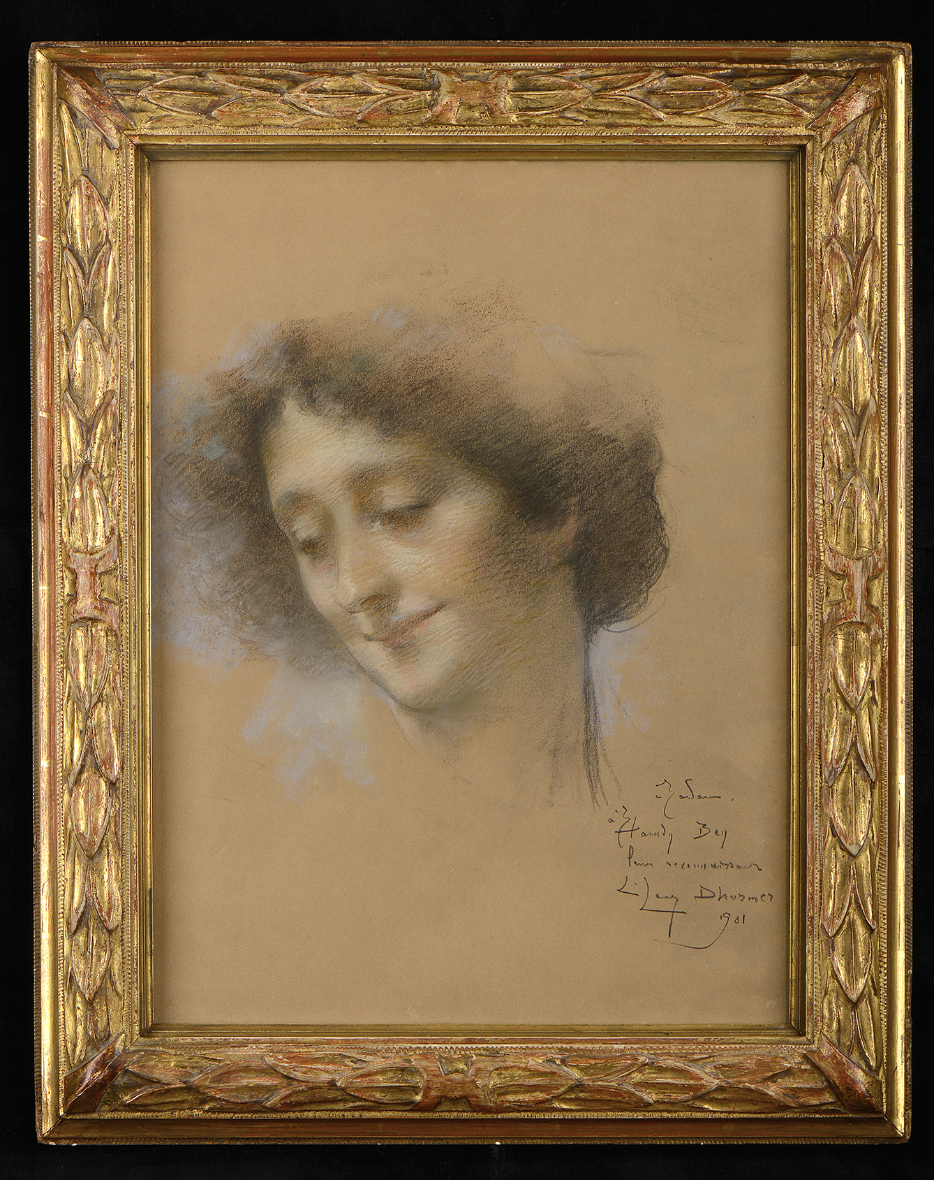 Dated 1901 and dedicated to the sitter, this pastel is a tender portrait of Marie Palyart (1863-1943), the French-born second wife of the Ottoman painter, archaeologist and administrator Osman Hamdi Bey (1842-1910), who called her ‘Naile’. The couple had four children, and ‘Naile Hanim’ posed for several of Hamdi Bey’s paintings, including a 1910 portrait recently acquired by the Sakip Sabanci Museum in Istanbul. Another, earlier portrait of ‘Naile Hanim’ by Hamdi Bey is in the collection of the Istanbul Museum of Painting and Sculpture.
