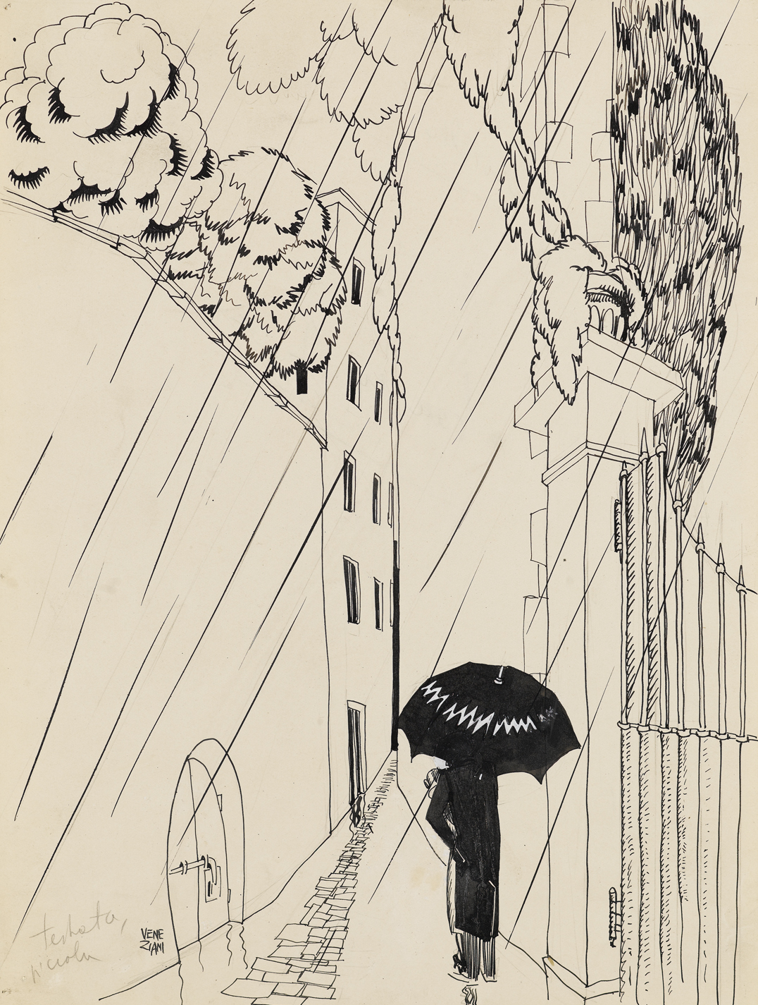 Datable to around 1922-1925, this drawing seems to have been used as an illustration for the Italian monthly review Novella, Rivista letteraria. The content of the magazine - launched in 1919 by the publisher Italia but later taken over by the Mondadori publishing house - was made up largely of short stories by Italian writers.