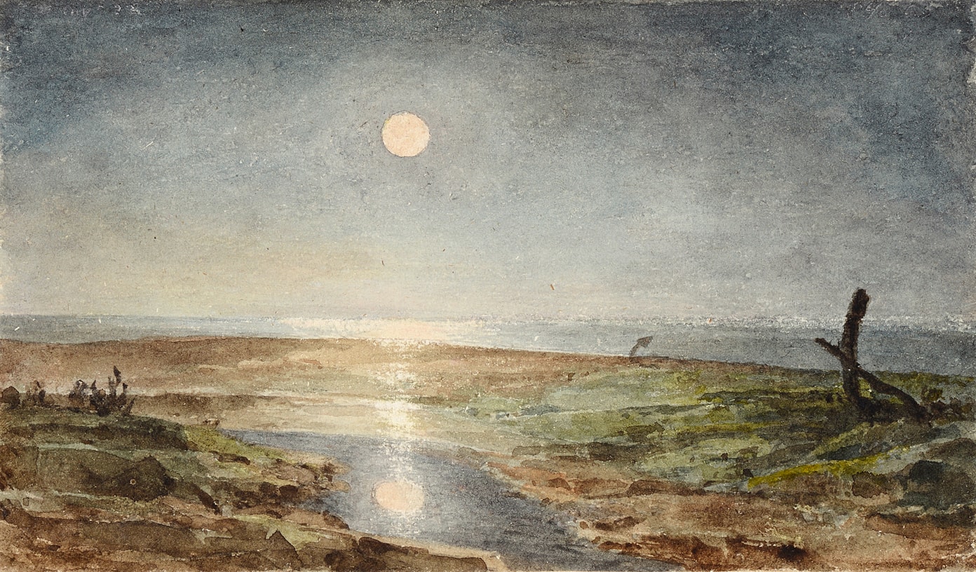 Many of Joseph Gandy’s topographical drawings and watercolours serve as a form of diary and travelogue, a practice he had begun during his period of study in Italy between 1794 and 1797, when he went on sketching expeditions in the Campagna. According to the artist’s annotations on the sheet, this watercolour was drawn at 8 o’clock on the 31st of August, 1822, on the beach at Shoreham in West Sussex, on the south coast of England.