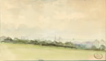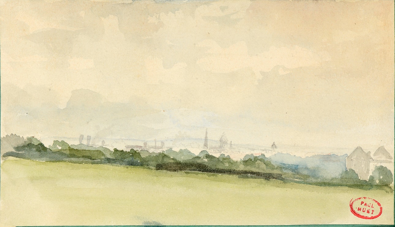 Inscribed note aquarellée de Paul Huet. (époque 1845-47), and Vue sur Paris qui semble prise de Montmartre (avec le Panthéon avant le Val de grâce), on the verso.