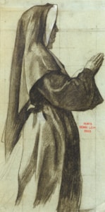 A preparatory study for the kneeling figure of Saint Jeanne de Chantal in Henri Levy’s large painting Les Gloires de la Bourgogne in the Salle des Etats de Bourgogne of the Hôtel de Ville in Dijon.