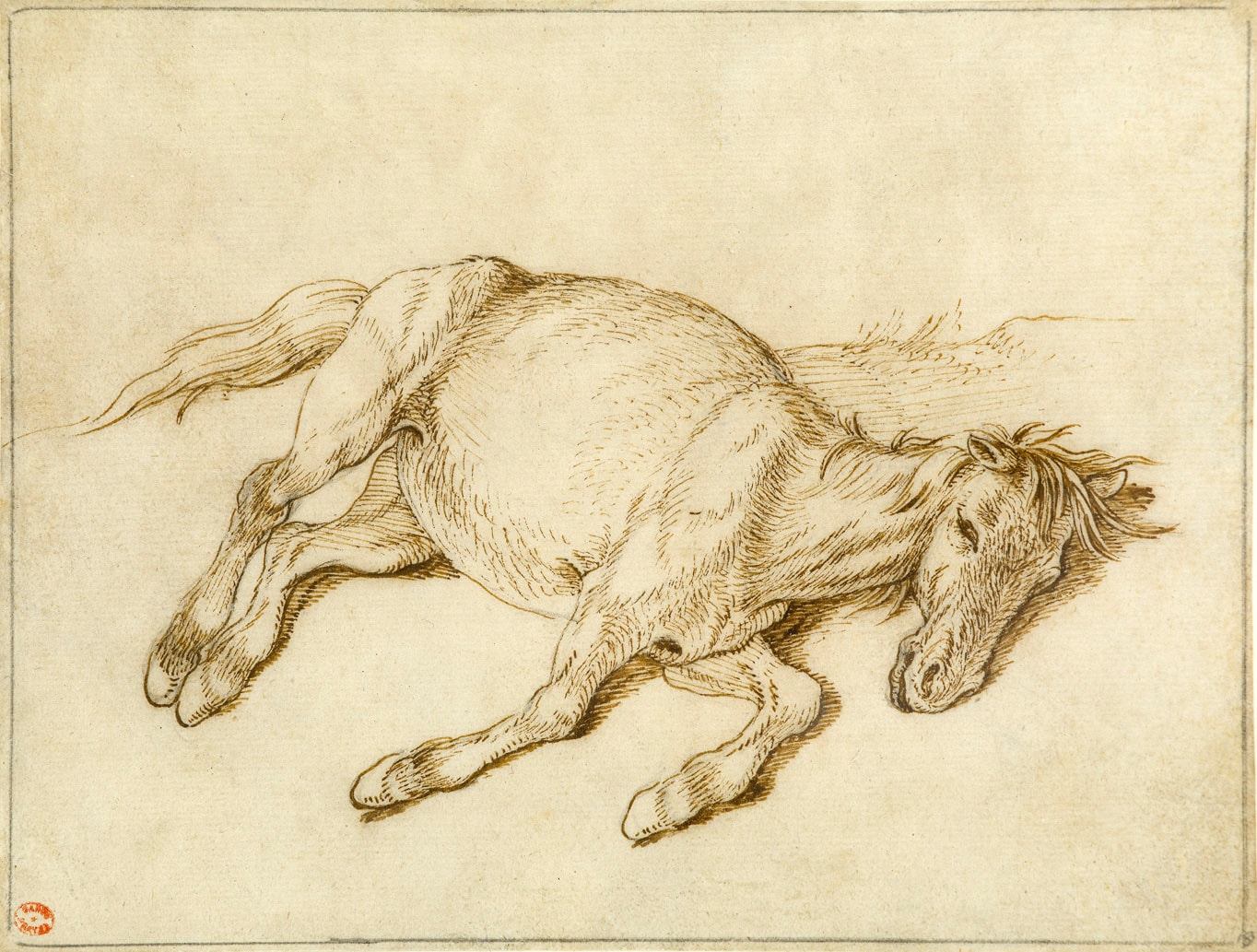 Among stylistically comparable pen drawings by Scorza is a study of a standing cow in the Czartoryski collection at the Muzeum Narodowe in Cracow and a drawing of a saddled, grazing horse, which appeared at auction in London in 1997. A closely related study of a standing horse, of similar technique and dimensions, was also in the Carlo Prayer collection and appeared with the present sheet on the art market in 1989.