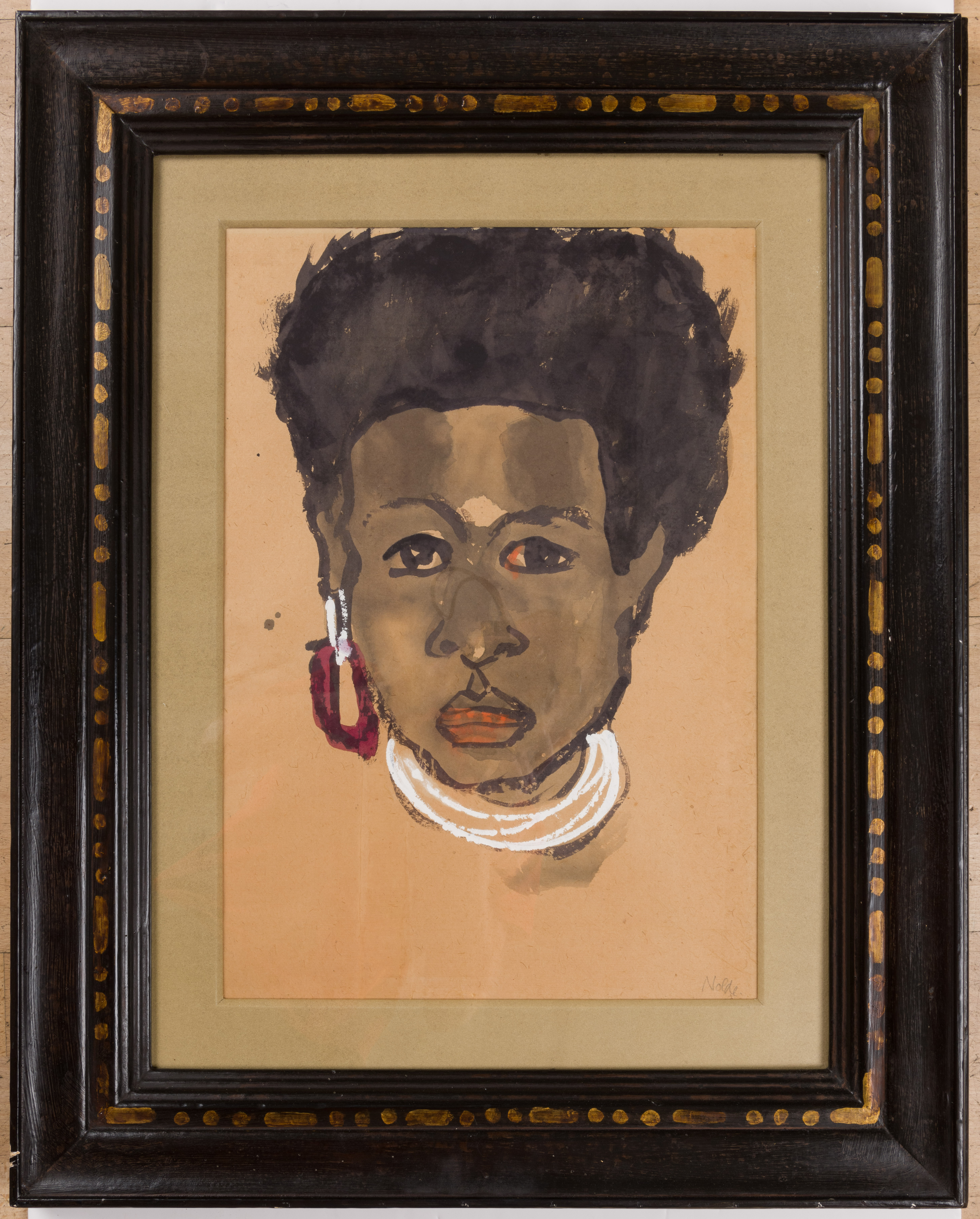 On his trip to New Guinea, Nolde developed a watercolour technique of translucent layer of colour over outline drawings in pen or brushed ink. The present sheet, previously unpublished, is a particularly fine example of his head studies of native subjects of this period.