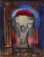 When the present pastel was last exhibited in public, twenty-five years ago in Japan, the author of the catalogue entry noted of it: ‘For some reason, this Christ on the Cross is set inside a room with no exit. It is a Redon pastel which we can be proud to have in Japan...The image of Christ appears, emitting light, behind a pillar in a dark room, this dense interior contains the deep spirituality characteristic of Redon’s religious pictures.’ In superb condition, the present work has retained all of its freshness and richness of colour, and as such presents a consummate example of Redon’s pastel technique.